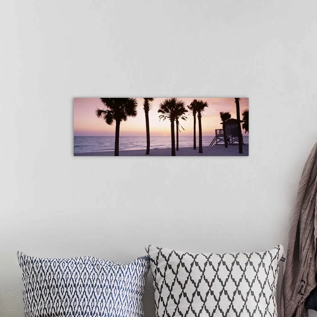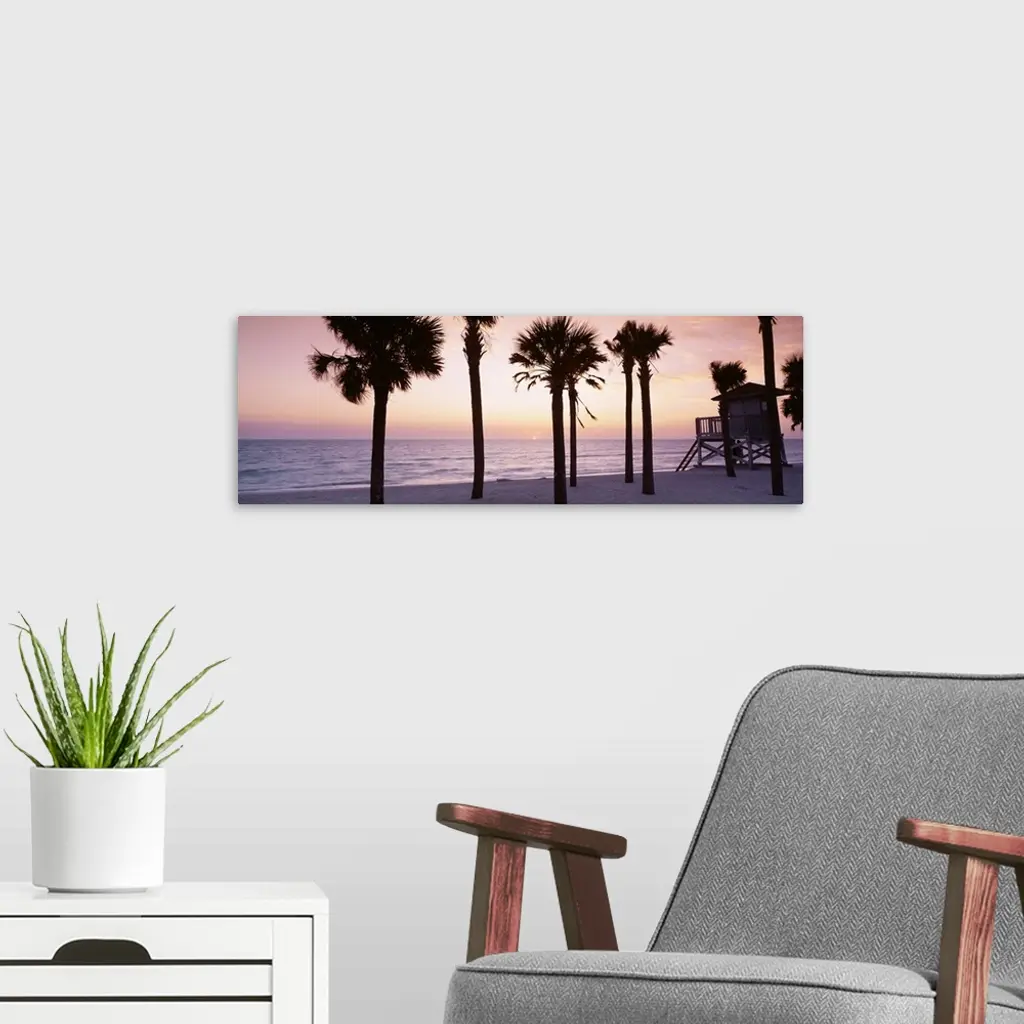 Palm Trees And A Lifeguard Hut On The Beach, Gulf Of Mexico, Lido Beach, St Armands Key, Florida