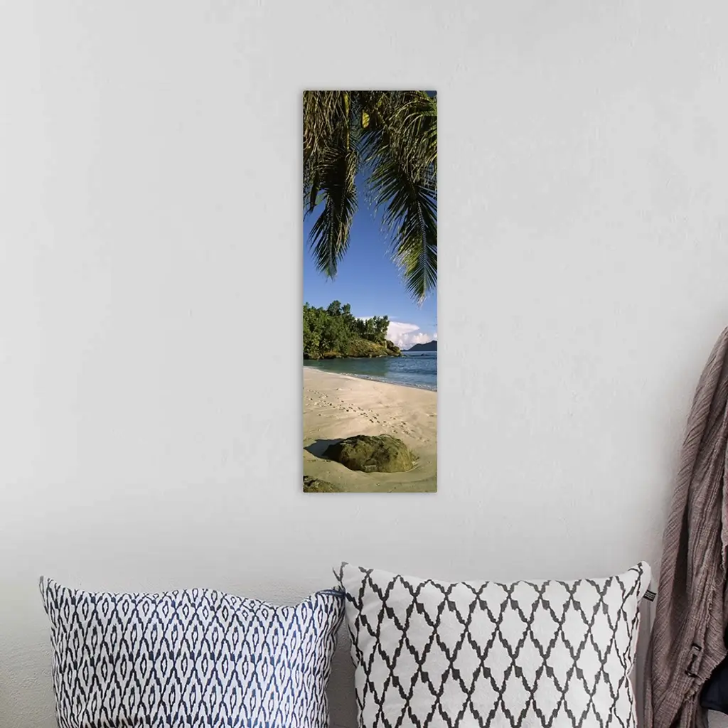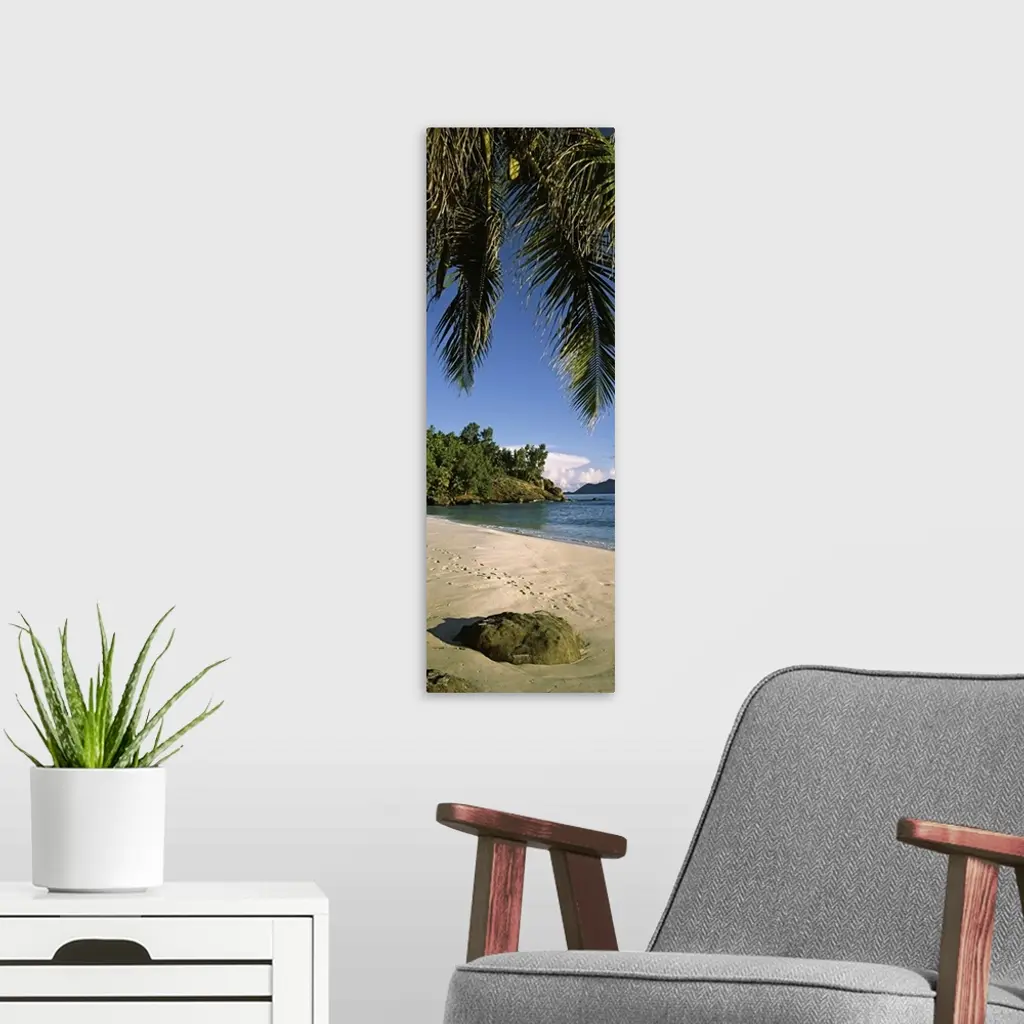 Palm trees and rocks on a small secluded beach on North Island, Seychelles wall art for home and office decor. Discover canvas art prints, photos, mural, big canvas art and framed wall art in GreatBigCanvas.com's varied collections.