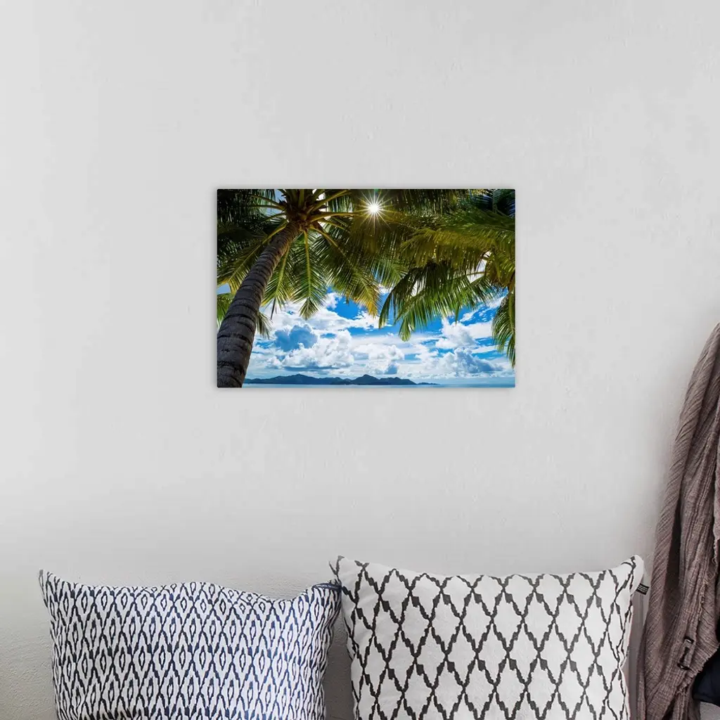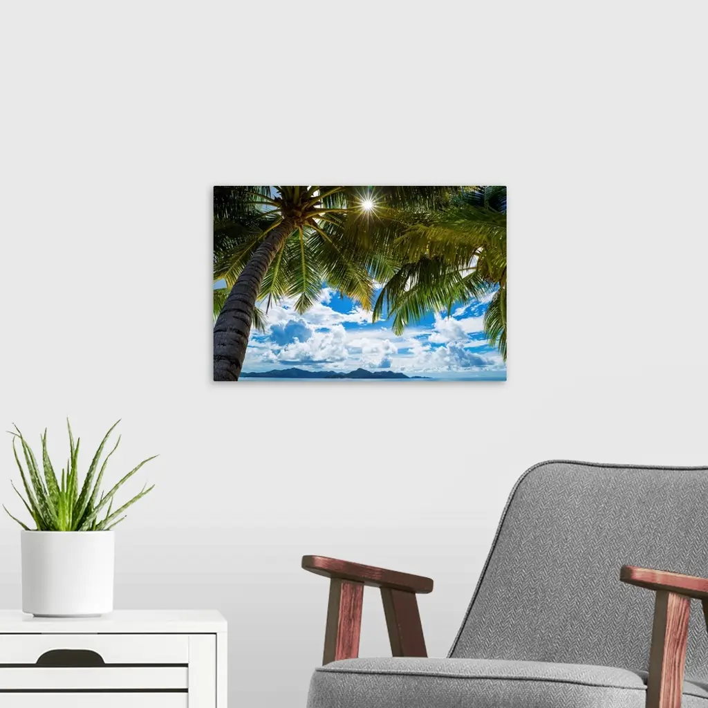Palm Trees And Tropical Beach, La Digue, Seychelles