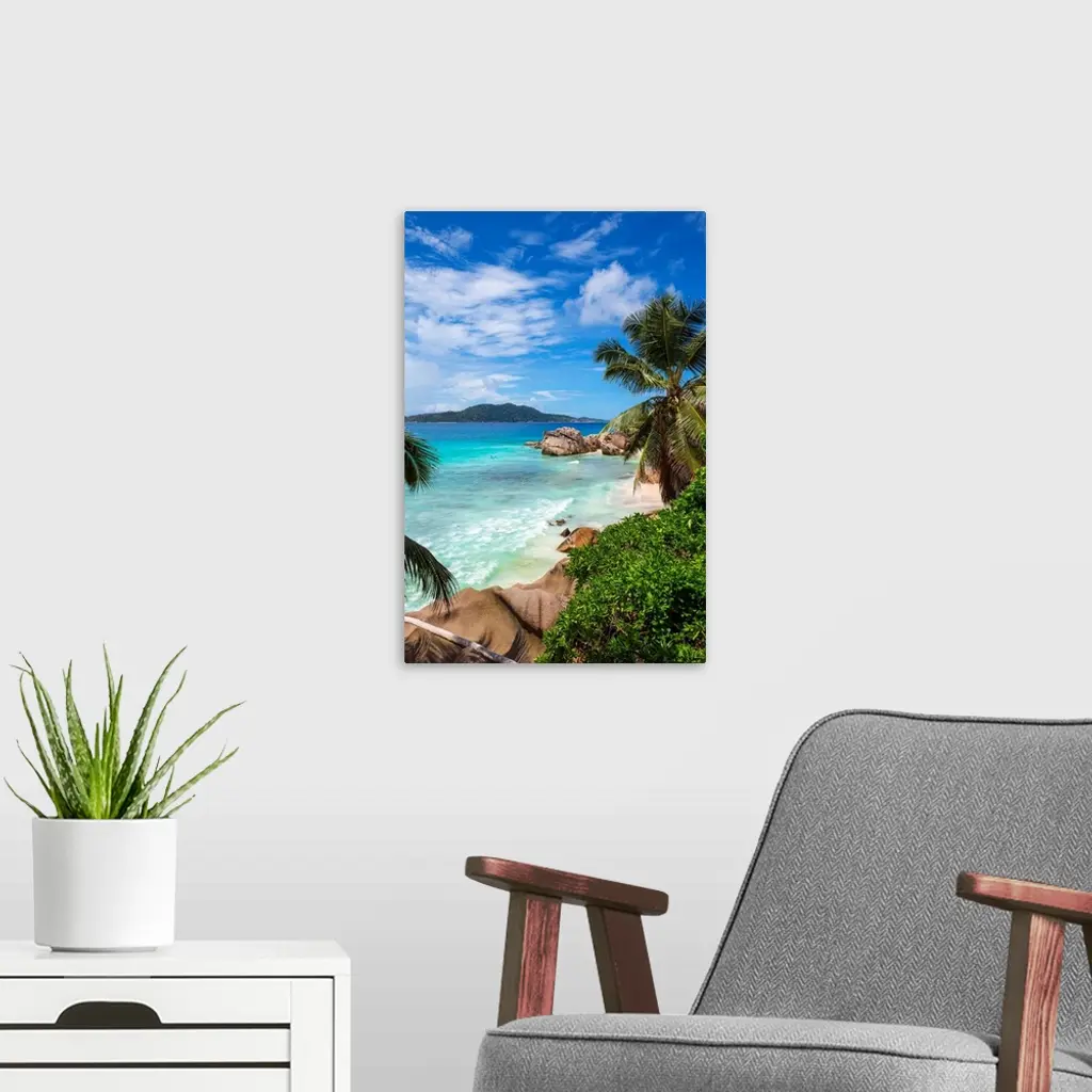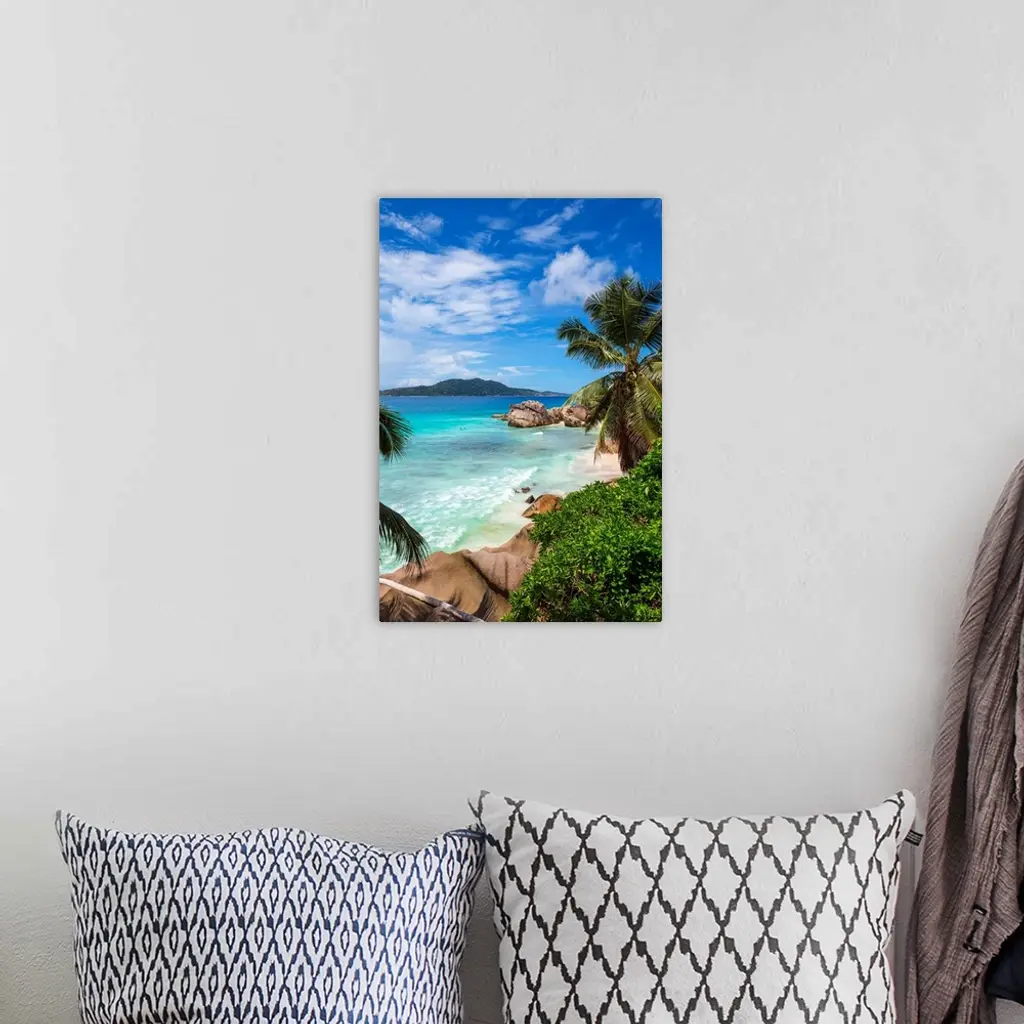 Palm Trees And Tropical Beach, La Digue, Seychelles