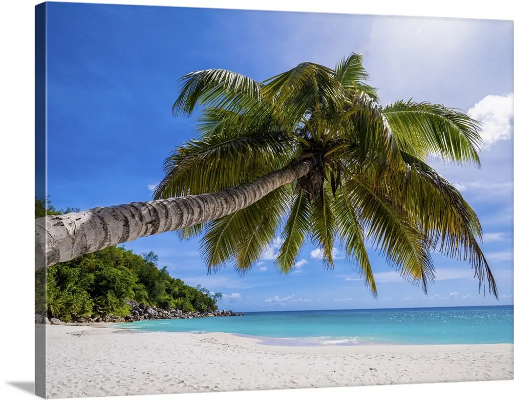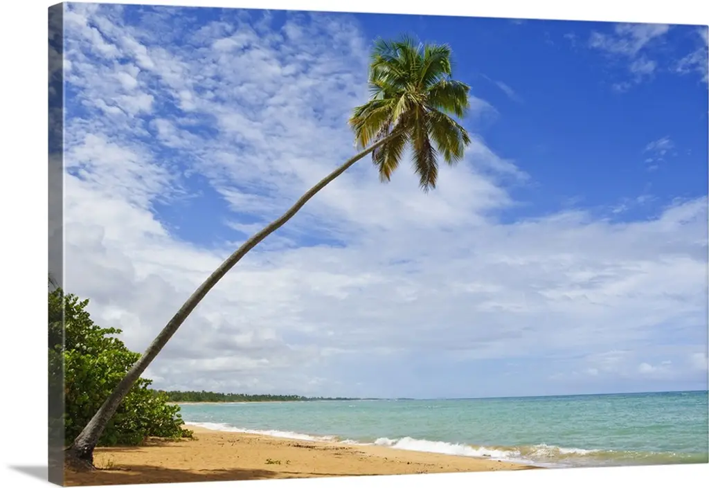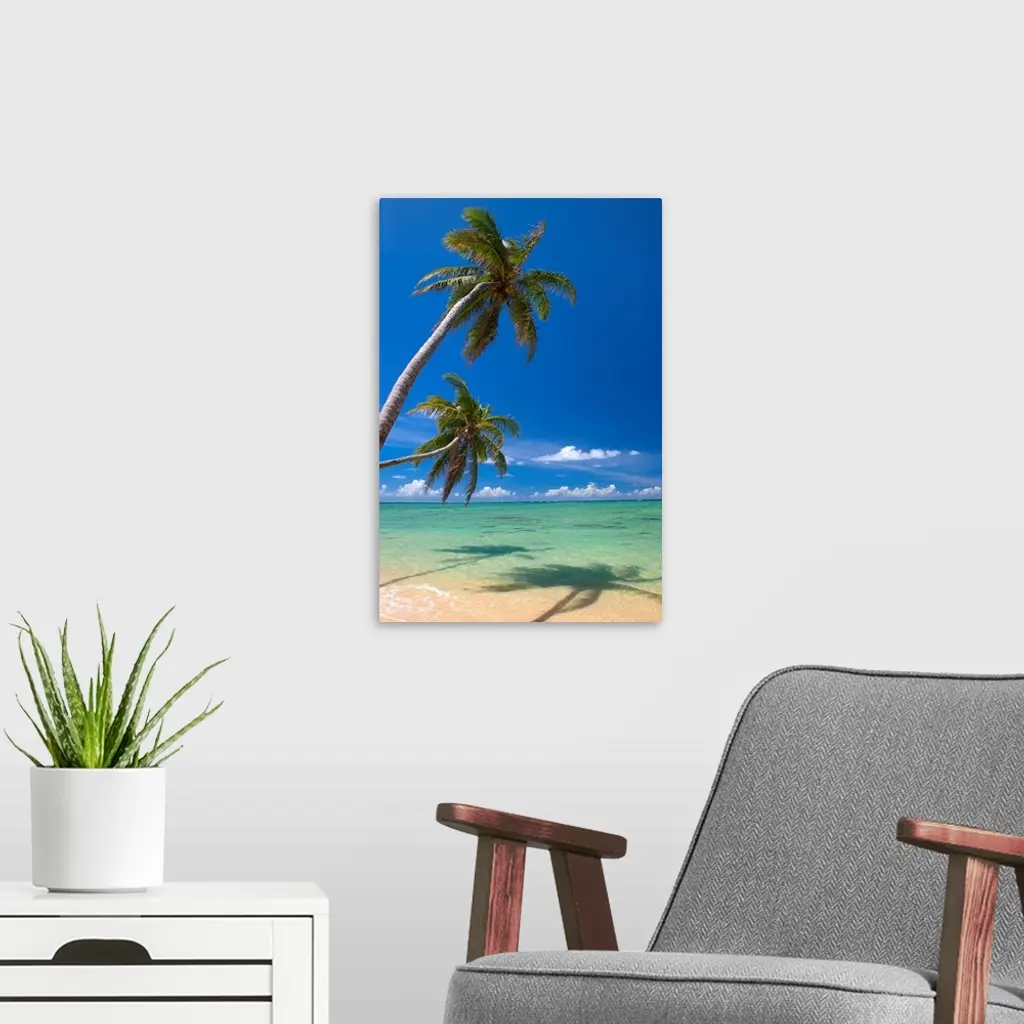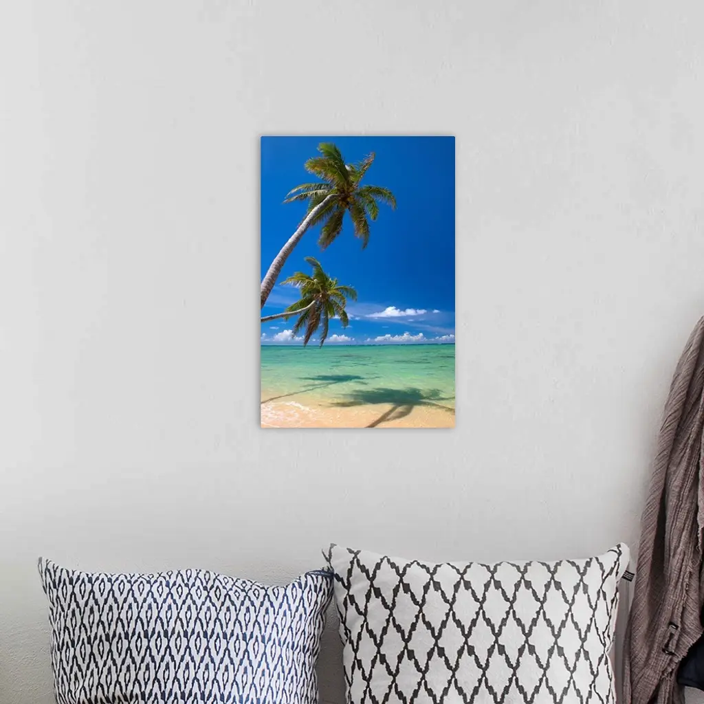 Palm Trees Lean And Cast Shadow On Beach With Turquoise Ocean wall art for home and office decor. Discover canvas art prints, photos, mural, big canvas art and framed wall art in GreatBigCanvas.com's varied collections.