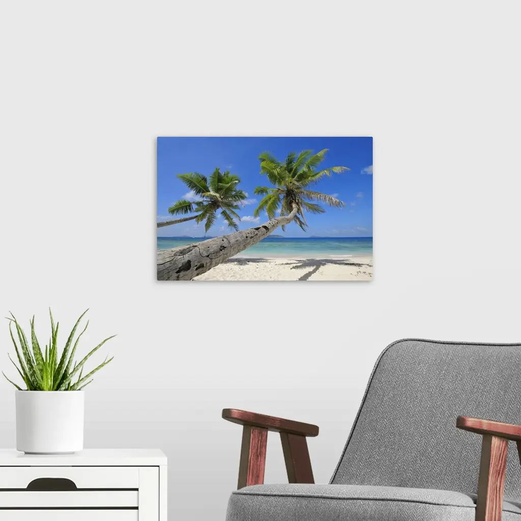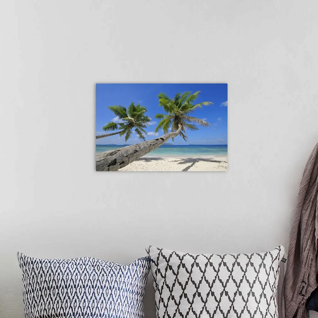 Palm Trees on Beach with Indian Ocean, La Digue, Seychelles