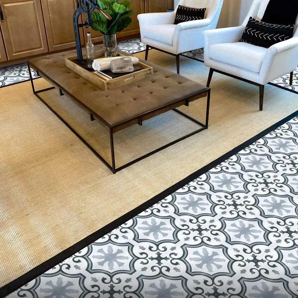 This playful geometric pattern works well in both contemporary and traditional environments and can be enjoyed both indoors and outdoors for many years. This tile will add a one of a kind look to any setting. You need 4 tiles to make the full pattern.Brand: Moroccan Mosaic and Tile HouseType/style: Floor and Wall Tile Materials: CeramicDimensions: 10 inches long x 10 inches wide x 0.25 inches thick (each) Square footage per tile/ box: 0.70/tile, 12 tiles per box (8.40 sq. ft. per box) Installation: Professional installation is recommendedPack/case of: 12 tiles per box Durable, Indoors/ Outdoor, high quality materials, environmentally responsible and resource efficient, low maintenance
