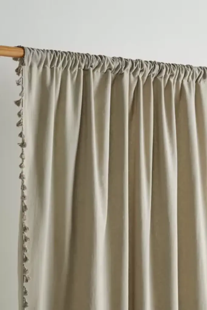 Mini tassel fringe-trimmed window curtain in semi-opaque cotton for keeping your room nice and cool. Comes with one curtain panel. **Features** \- Light-blocking curtain panel \- Tassel fringe trim for a modern-boho feel \- Rod pocket for hanging **Content + Care** \- Includes one window panel \- Cotton \- Hand wash; lay flat to dry \- Imported **Size** \- Dimensions: 52"w x 84"l