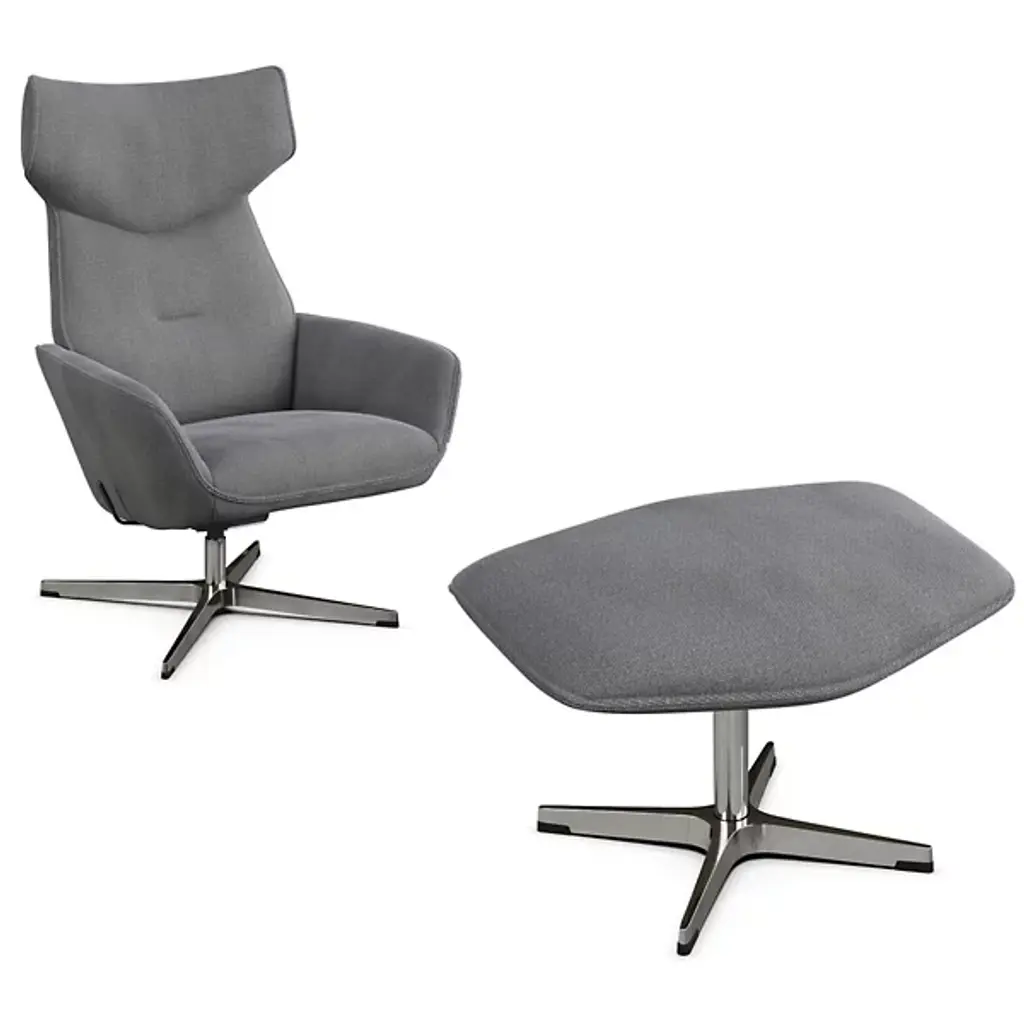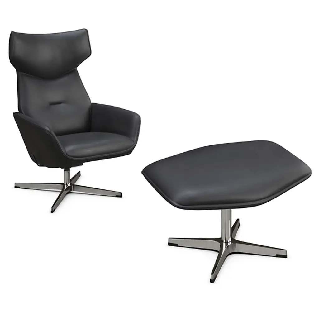 Presented by Kebe, the Palma Recliner with Ottoman is a Nordic-inspired furnishing that is inspired by contemporary style. Made in Poland, the distinctive silhouette, tall back, and unique glide path allow the chair to perfectly adjust to your movements. Ideal for reading, the office or living area, place the Palma solo, in pairs, or more based on purpose and preference. It would make a fantastic statement in a lobby or in the study.
