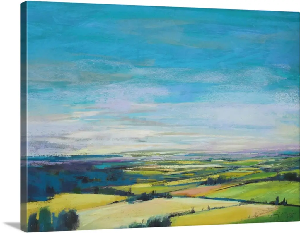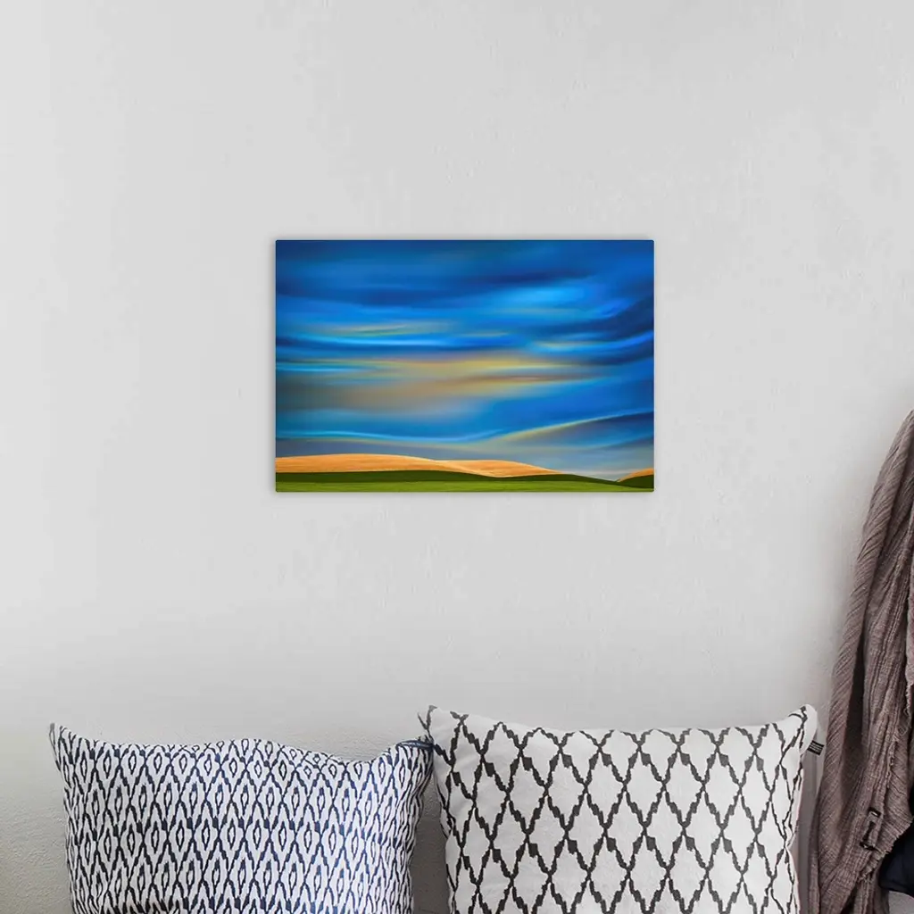 Abstract photograph of the Palouse farmland in Washington state, with a vibrant blue motion blurred sky.