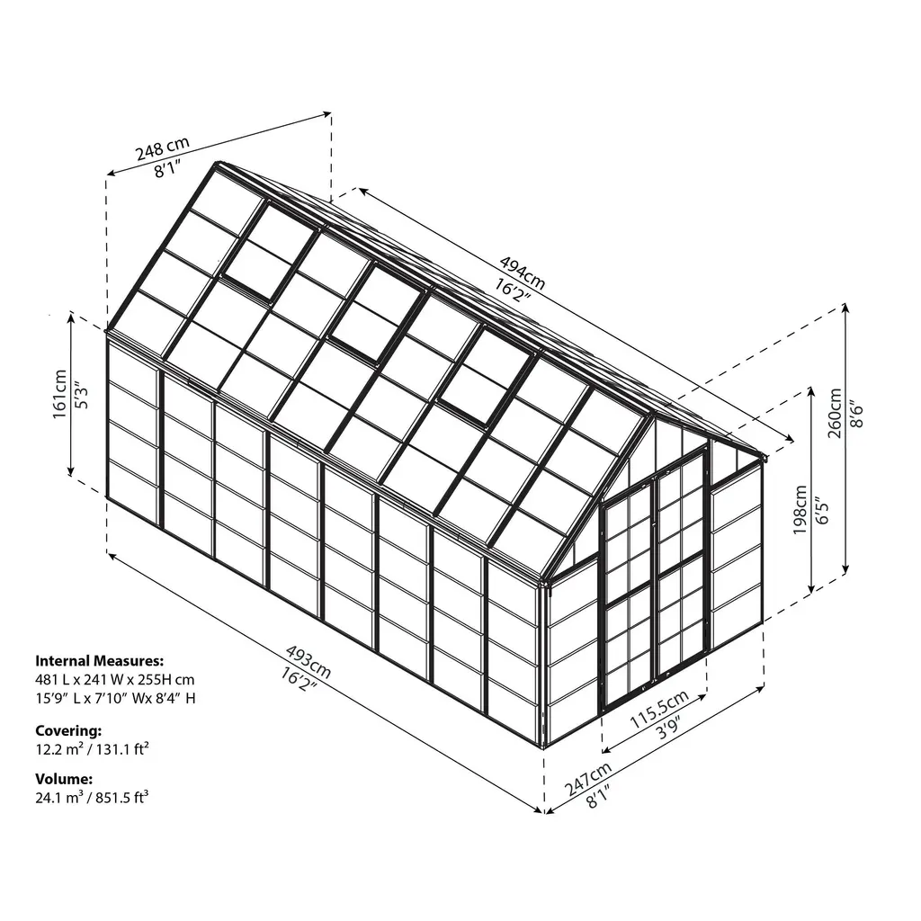 Palram - Canopia Outdoor Snap & Grow 8' X 16' Greenhouse - Silver - 8 Ft. X 16 Ft.