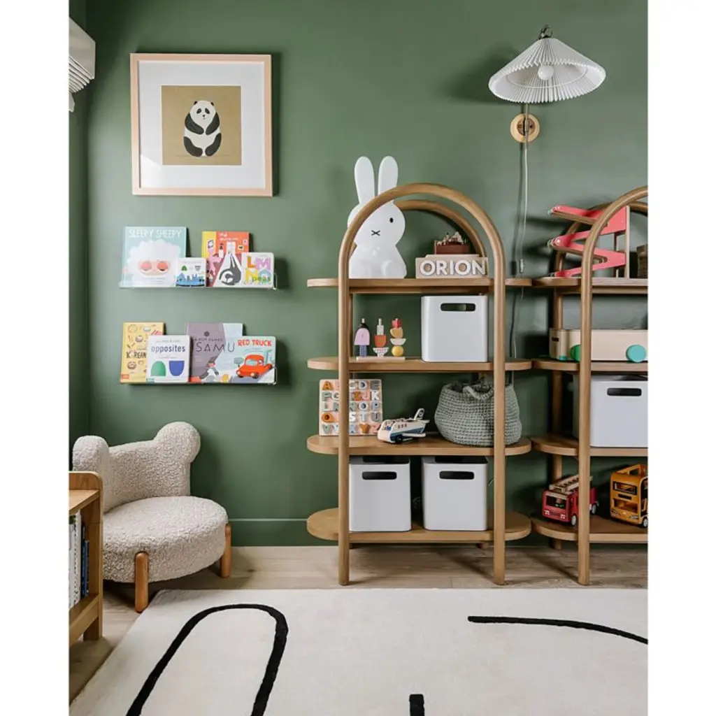 This adorably rotund panda brings high contrast and minimalist style to a nursery or playroom. An original digital illustration by Chicago-based artist Betsy Siber, the custom giclee-print is rendered in confident strokes and a gender-neutral palette of black, white and sand. Framed in natural wood with a white mat, it looks great on its own above a dresser or bookcase, but it's especially charming when placed among Siber's other animal artworks to create a friendly menagerieas featured in Mandy Moore's nursery.