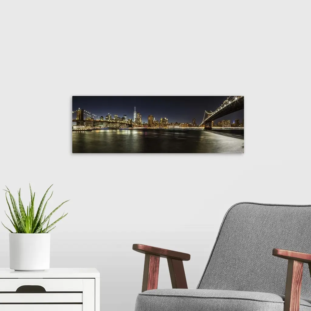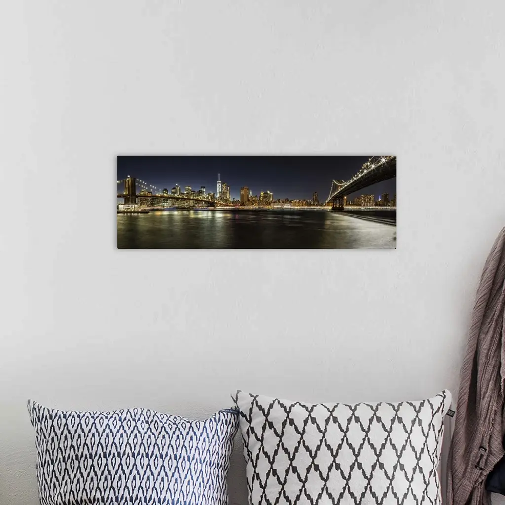 Panorama of the Brooklyn and Manhattan Bridges in NYC.