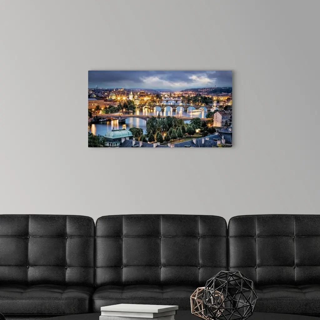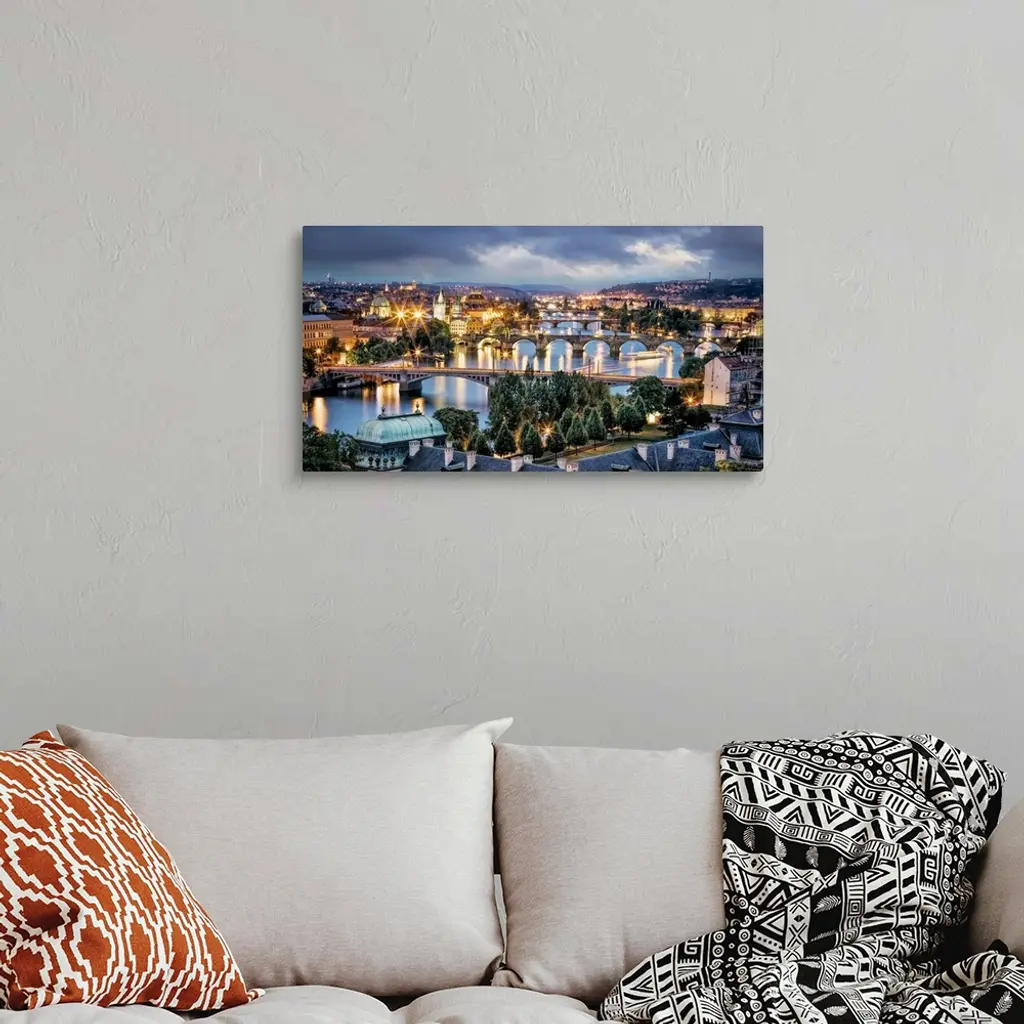 Panorama Of Vltava River And Bridges In Prague At Sunset