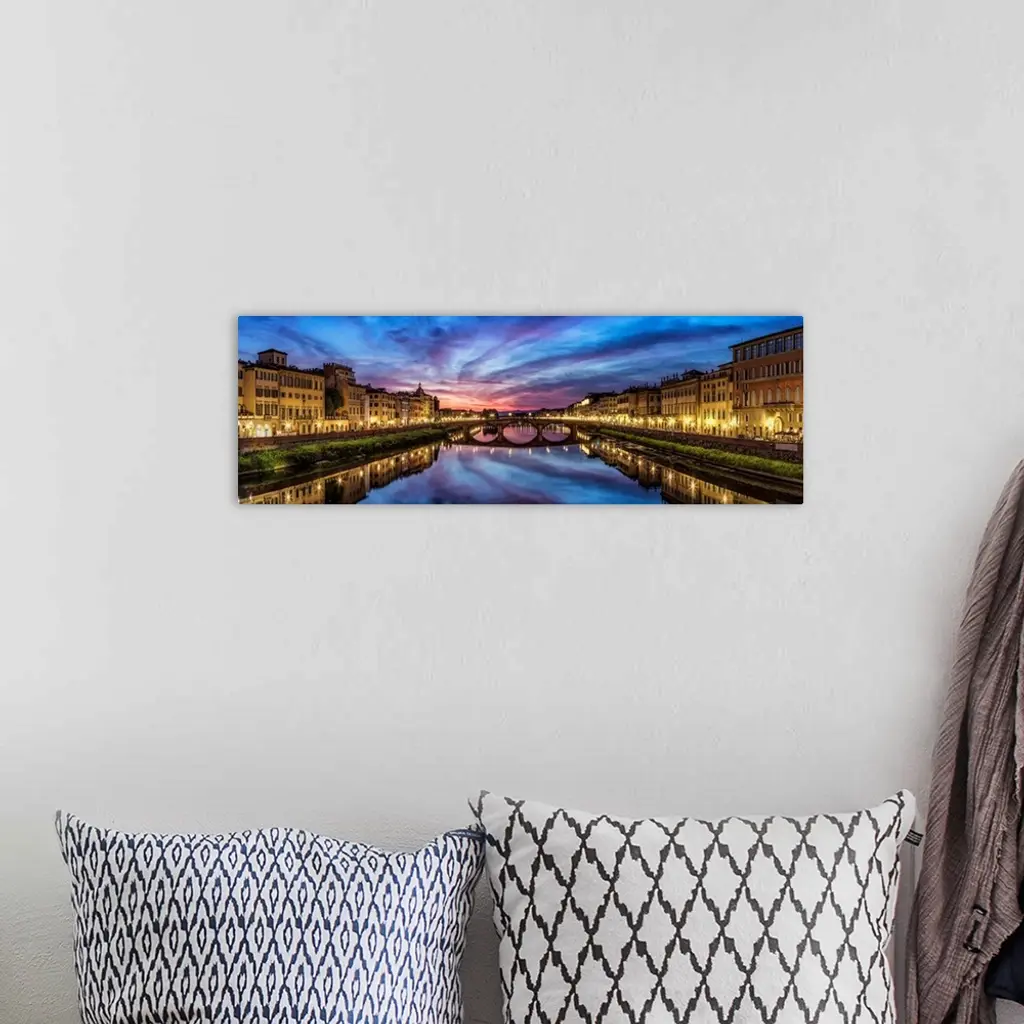 Panorama Over The Arno River At Sunset In Florence, Italy
