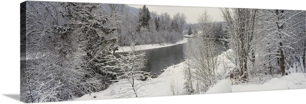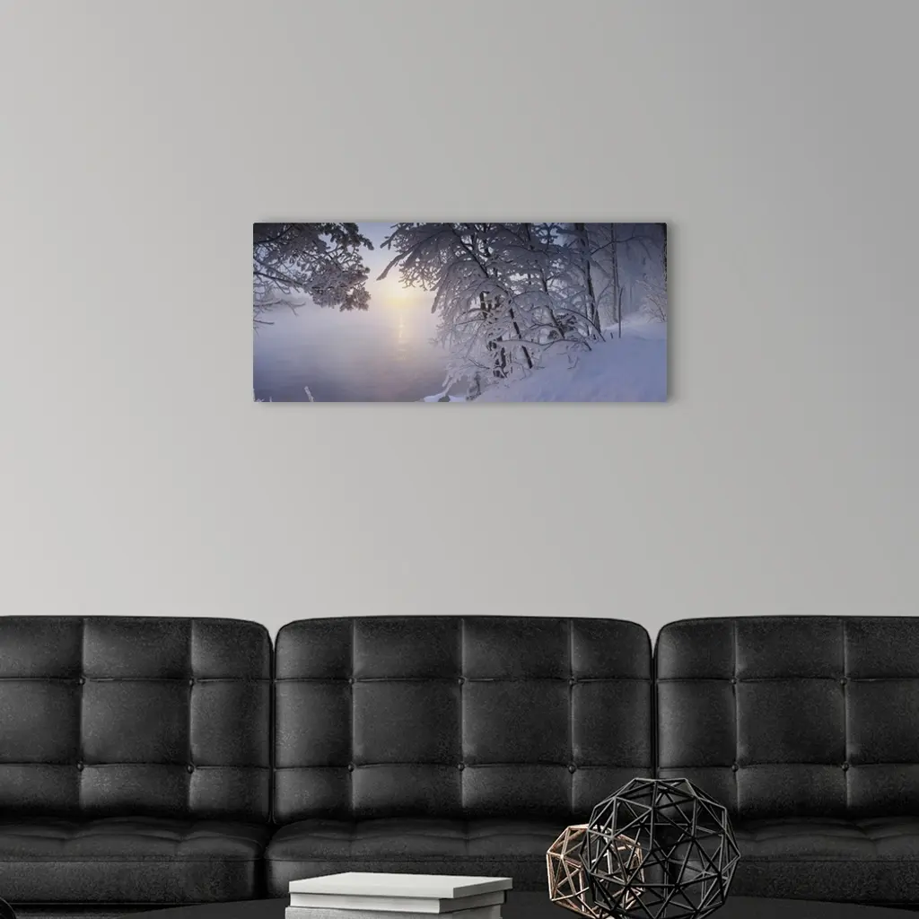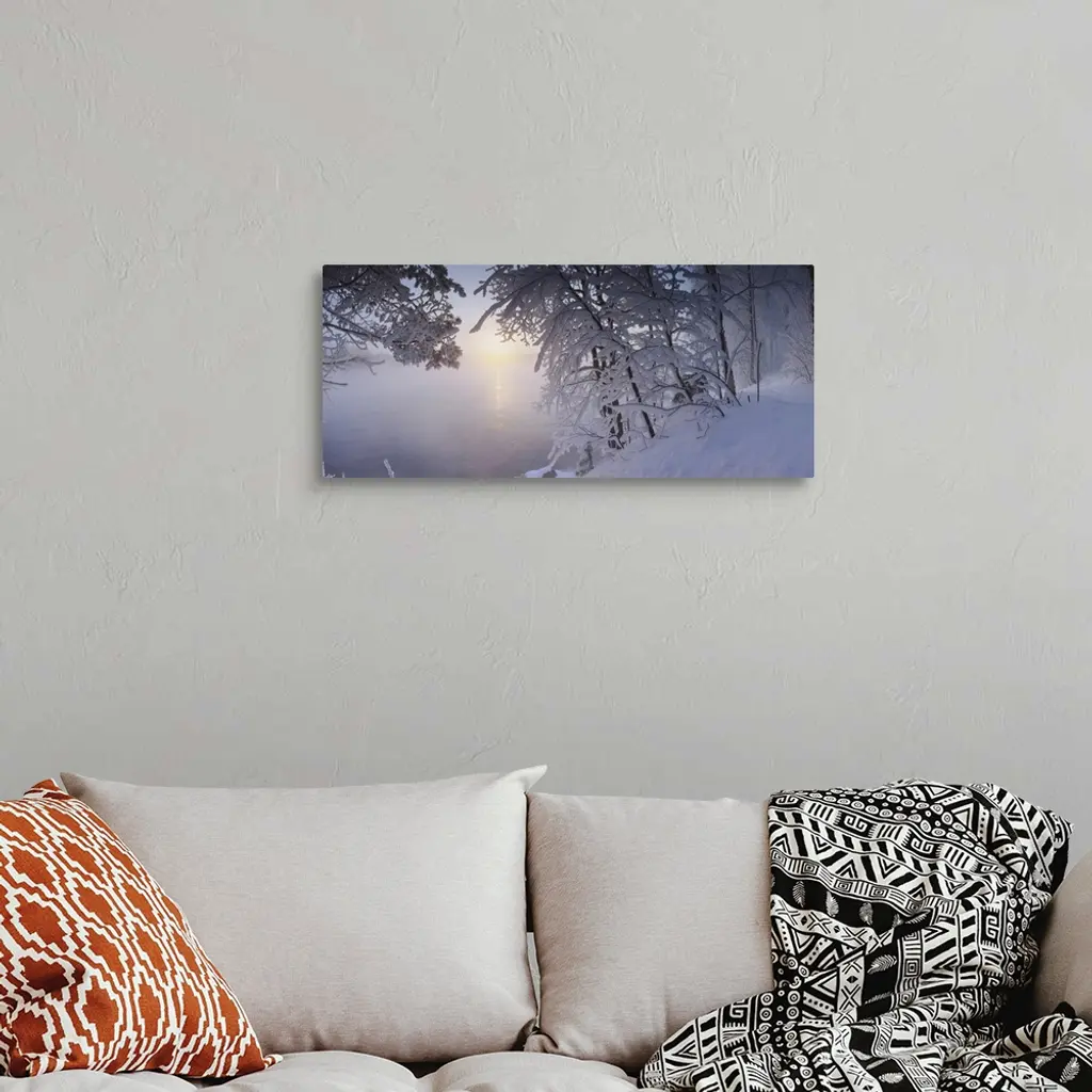 Panoramic view of a river in winter, Vuoksi River, Imatra, Finland wall art for home and office decor. Discover canvas art prints, photos, mural, big canvas art and framed wall art in GreatBigCanvas.com's varied collections.