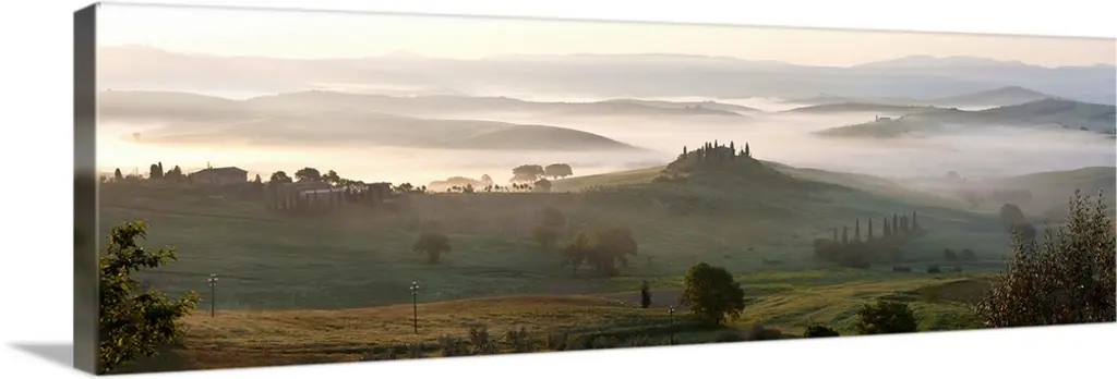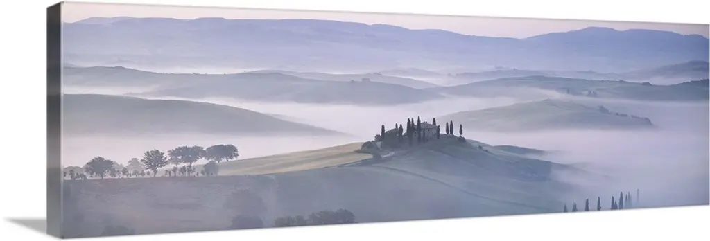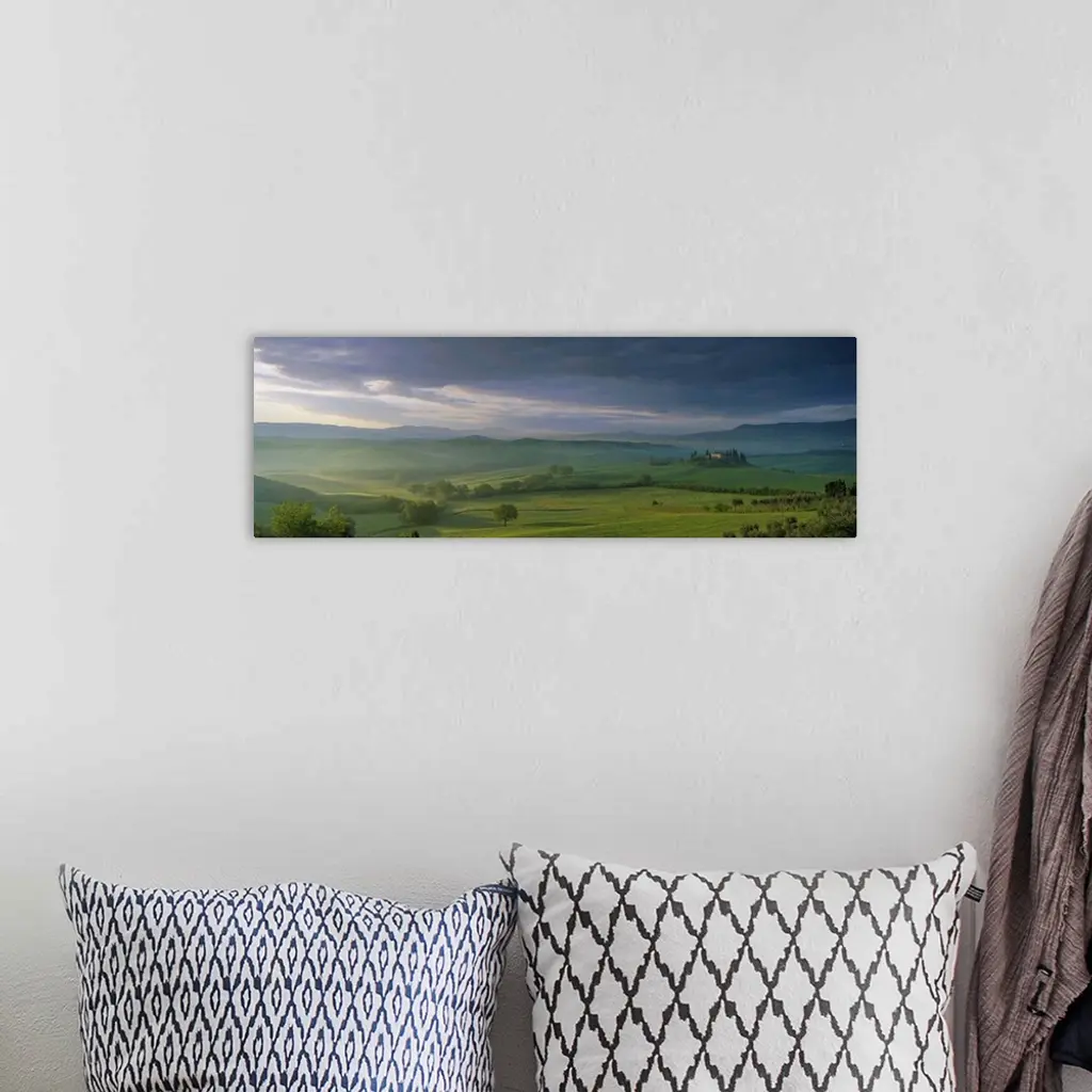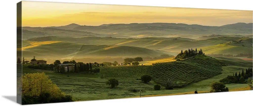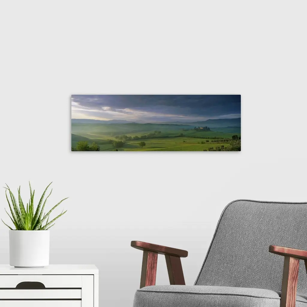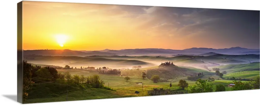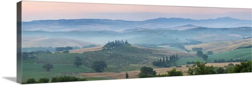 Panoramic view of Belvedere and the Val d'Orcia at dawn, in spring, Tuscany, Italy wall art for home and office decor. Discover canvas art prints, photos, mural, big canvas art and framed wall art in GreatBigCanvas.com's varied collections.
