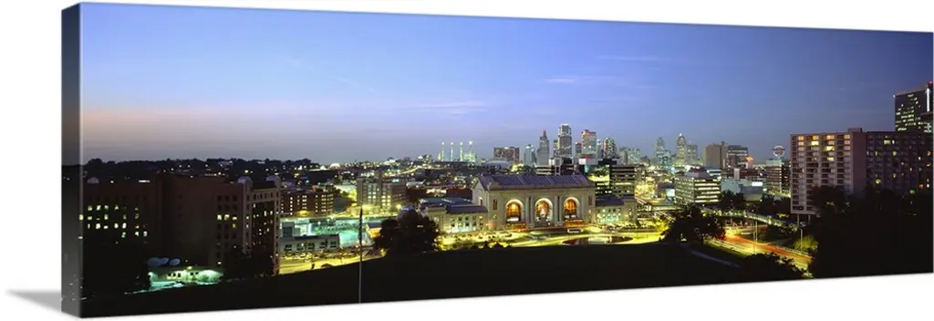 Panoramic view of the Country Club Plaza at dusk from above, lit up for the holidays. wall art for home and office decor. Discover canvas art prints, photos, mural, big canvas art and framed wall art in GreatBigCanvas.com's varied collections.
