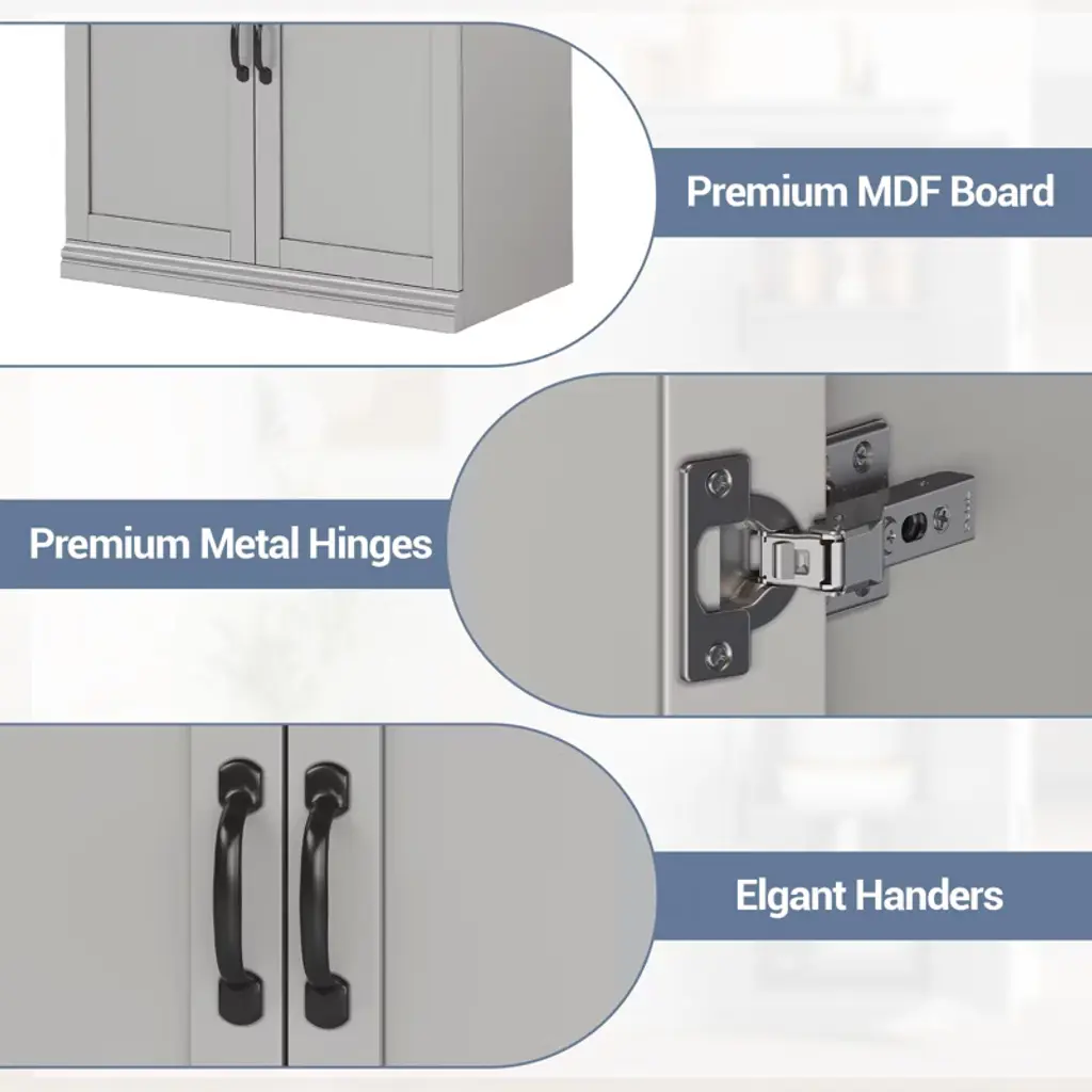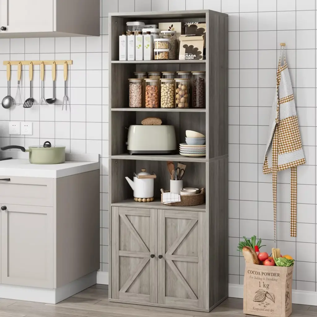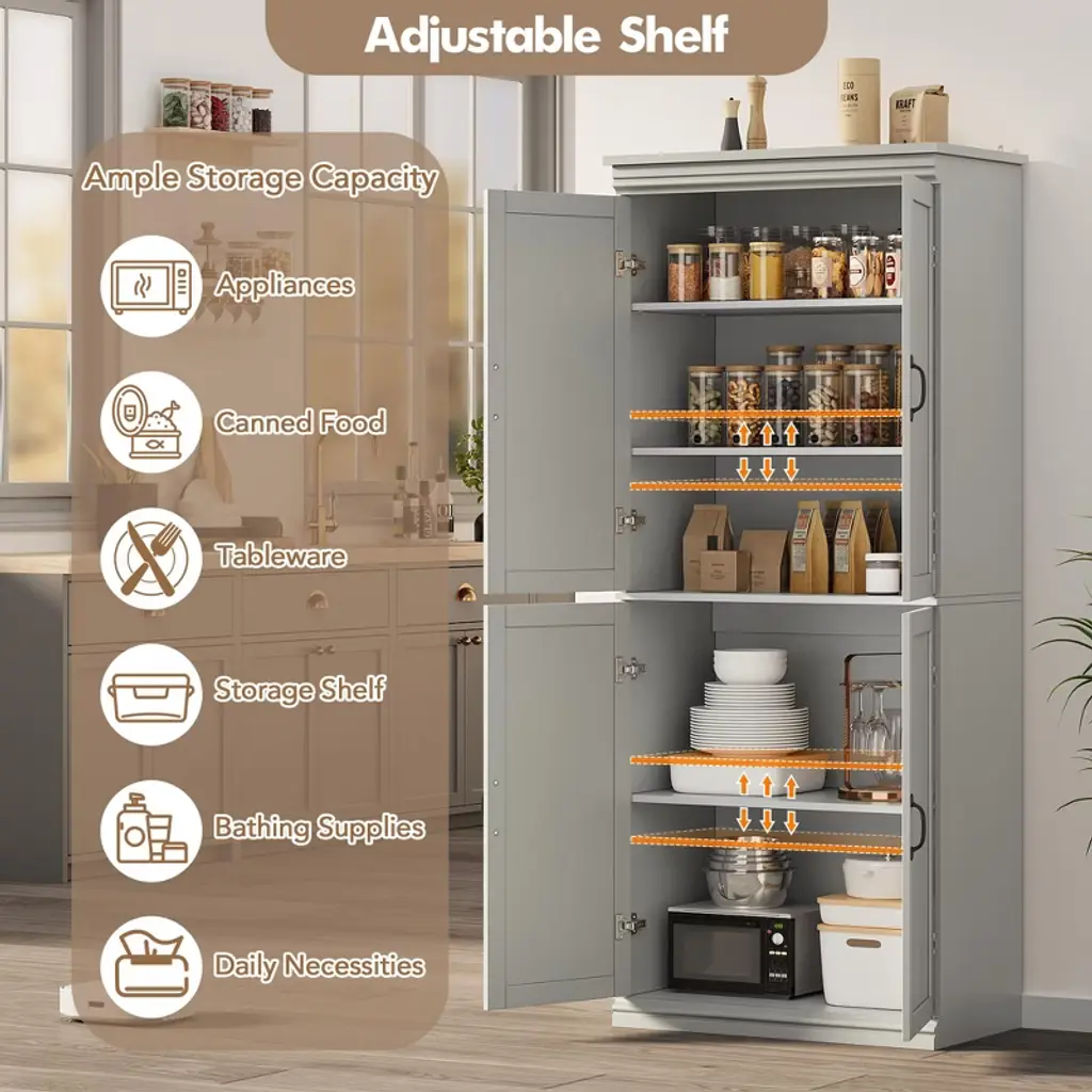 Pantry Cabinet, 70" Tall Storage Cabinet - 2-Door Freestanding Cupboard with 3 Adjustable Shelves, Modern Kitchen & Bathroom OrganizerBrand: TROPOWMaterial: Engineered Wood (P2 MDF)Color: Neutral Wood ToneStyle: Modern CountryDimensions: 30"W x 14"D x 70"HWeight: 85 lbsShelves: 3 (Adjustable Height)Weight Capacity: Middle & Bottom Shelves: 100 lbs each Other Shelves: 50 lbs eachSpecial Features: Anti-Tip Kit, Oversized Metal HandlesAssembly Required: Yes (Includes Labeled Parts & Instructions) Product HighlightsSleek & Versatile Design 70" tall freestanding cabinet fits seamlessly in kitchens, bathrooms, or dining rooms Modern country style with clean lines and metallic handles Neutral wood finish complements any home decor Customizable Storage Space 3 adjustable shelves accommodate items of all sizes Two spacious compartments with smooth-operating doors Total dimensions: 30"W x 14"D ¨C ideal for tight spaces Heavy-Duty & Secure Premium P2 MDF construction ensures long-lasting durability 100 lb capacity on middle/bottom shelves (50 lbs on others) Includes anti-tip wall anchors for added safety Easy Assembly & Use? Pre-labeled parts for quick setup? Oversized coated handles for comfortable access? High-quality hinges for smooth door operationWhy Choose This Pantry Cabinet?? Maximizes Vertical Storage ¨C Perfect for small spaces? Adjustable Shelving ¨C Customize for your needs? Sturdy & Safe ¨C Supports heavy items securely? Multi-Room Use ¨C Works in kitchen, bathroom, or living areasIdeal For Storing: Pantry dry goods & kitchen supplies Bathroom toiletries & towels Home office or living room essentials