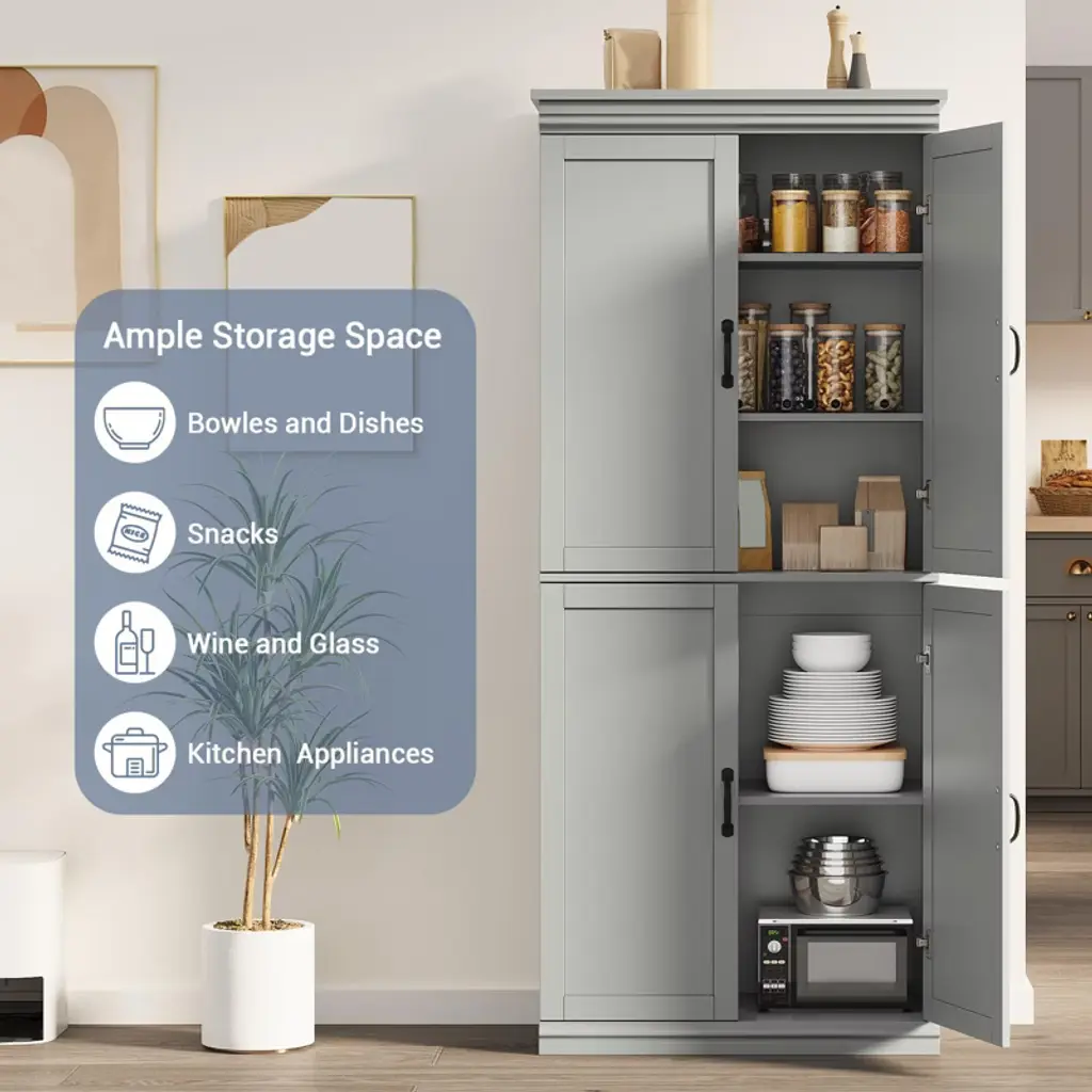Pantry Cabinet,70" Tall Kitchen Pantry Cabinets With 2 Doors And 3 Adjustable Shelves, Freestanding Cupboard, Modern Storage Cabinet For Bathroom