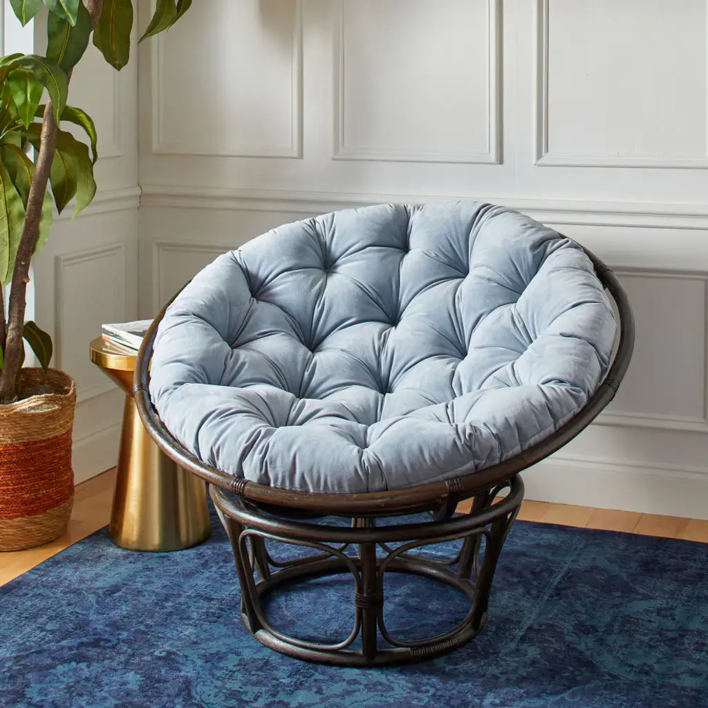 Elevate your indoor space with this versatile blue tufted papasan cushion. Featuring a stunning fabric and a pop of color, this cushion is sure to add comfort and style to any size space. From the living room to the dorm room, this luxurious cushion adds that personal touch you''ve been hunting for. Grab your coffee for a moment of peace, or kick back with a great book in this comfy yet stylish seating. Crafted out of durable fabric in North America, this papasan cushion offers quality you can trust! • Furniture not included• Includes one (1) Papasan Cushion• Papasan cushion cover cannot be removed• Available in a variety of colors to ensure that you find the perfect match for your decor style• The eco-friendly fill is 100% recycled polyester• Spot clean with mild detergent and water when needed• Made in North America•