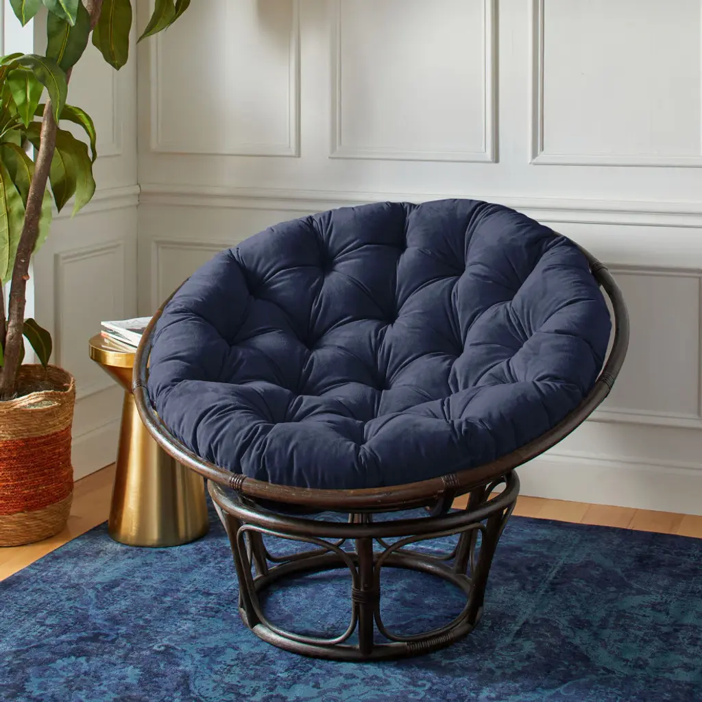 Elevate your indoor space with this versatile blue tufted papasan cushion. Featuring a stunning fabric and a pop of color, this cushion is sure to add comfort and style to any size space. From the living room to the dorm room, this luxurious cushion adds that personal touch you''ve been hunting for. Grab your coffee for a moment of peace, or kick back with a great book in this comfy yet stylish seating. Crafted out of durable fabric in North America, this papasan cushion offers quality you can trust! • Furniture not included• Includes one (1) Papasan Cushion• Papasan cushion cover cannot be removed• Available in a variety of colors to ensure that you find the perfect match for your decor style• The eco-friendly fill is 100% recycled polyester• Spot clean with mild detergent and water when needed• Made in North America•