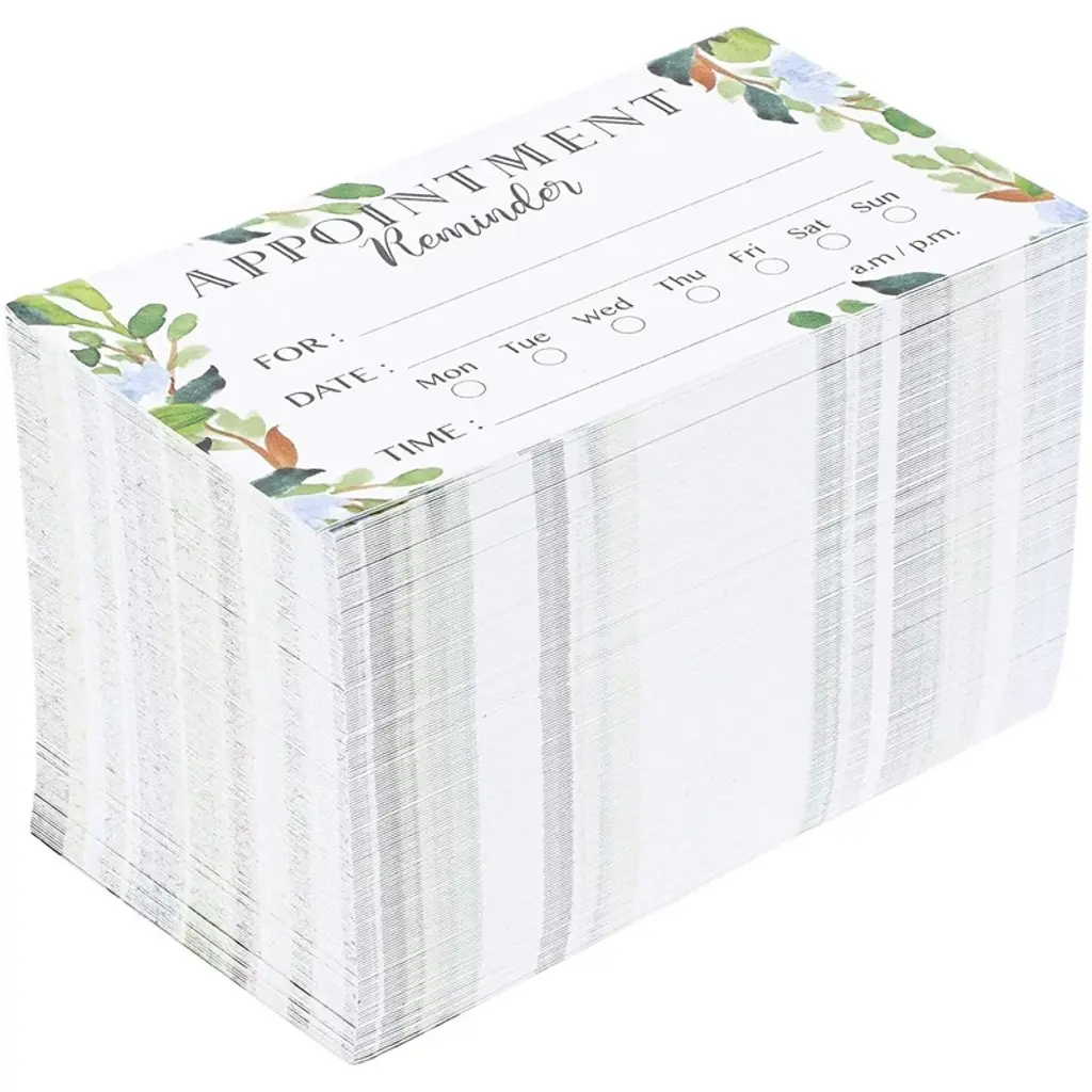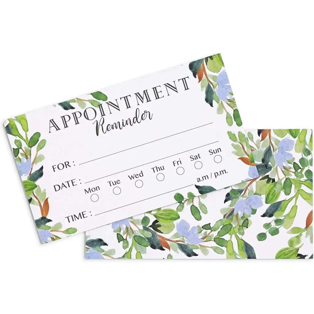 Paper Junkie 200 Count Appointment Reminder Cards With Green Foliage Design, Double-sided Salon Appointment Cards, 3.5 X 2 Inches