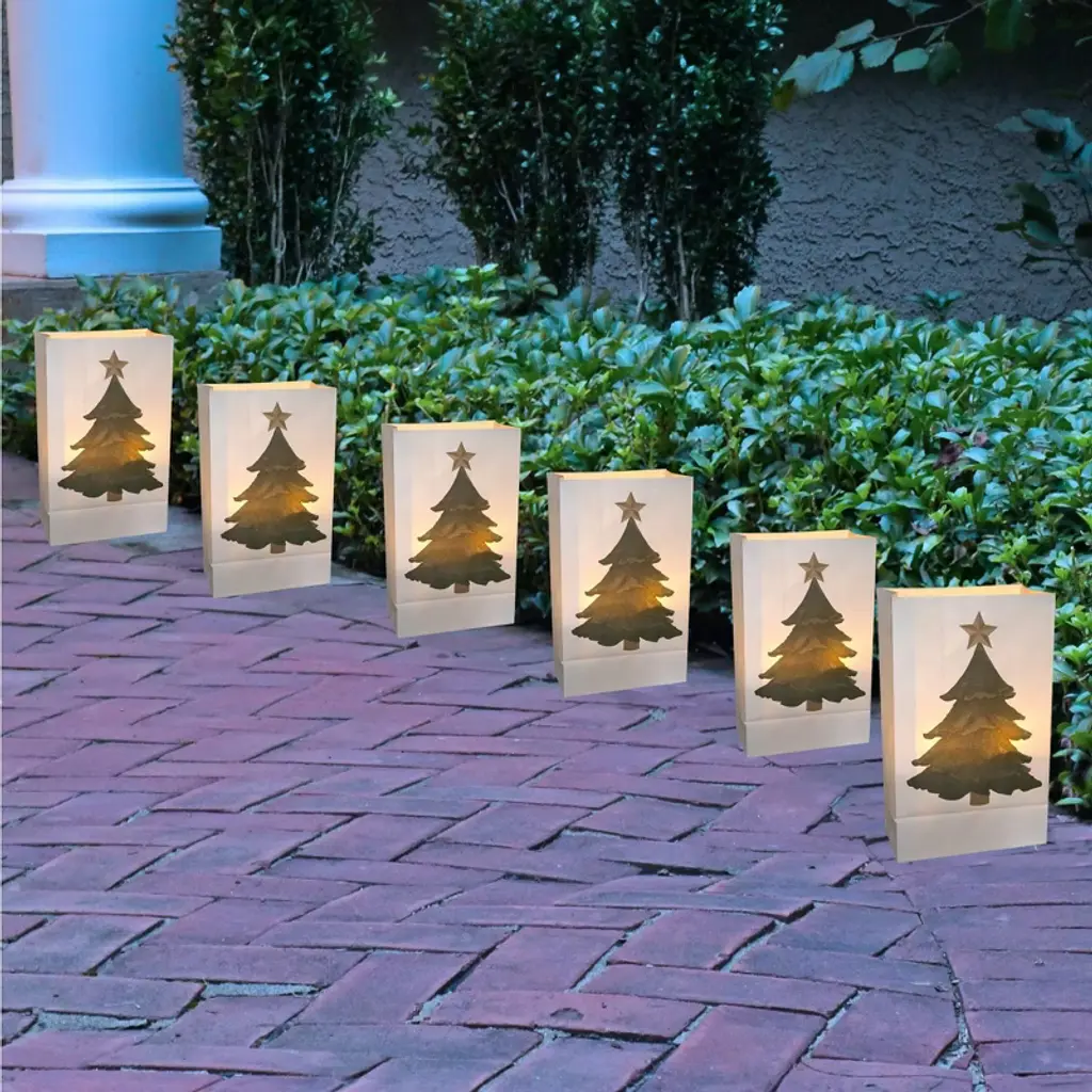 Welcome guests with decorative traditional walkway luminarias. They brighten up an entryway, driveway, sidewalk, staircase, or patio for a special occasion. Add a LumaBase water-filled candleholder or sand for weight and a battery-operated candle. Paper luminarias add a decorative flair while lighting the way for guests. Whether you are lighting your walkway for the holidays or illuminating an entire community, luminary bags bring warmth and light to any occasion. Not weather-resistant or flame-resistant.