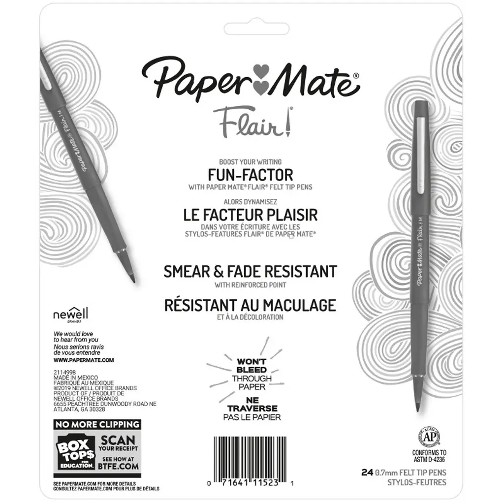 Paper Mate Flair 24pk Felt Pens 0.7mm Medium Tip Multicolored: Art Stationery, Durable Quick Drying, Pocket Clip