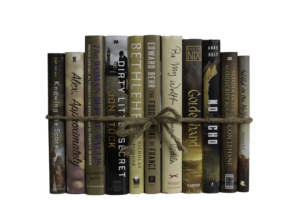 Transform your space with our Modern Boardwalk Dust Jackets By The Foot. These are authentic Modern hardback books in their original dust jackets in warm shades of muted gold and brown. All books are published 1980-present and include a variety of fiction and non-fiction titles. Each linear foot contains 10-12 books with an average height of 8.5-9.5". Order as many linear feet of our decorative book collection as you need to complete your project. Exact titles will differ from those pictured.