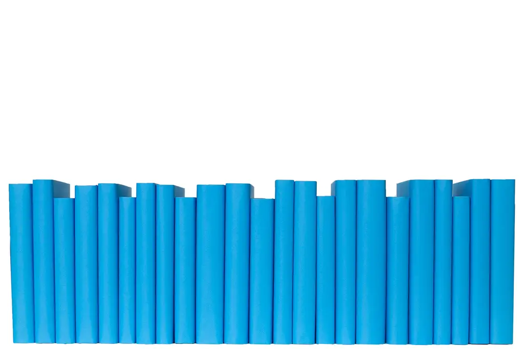 Take your design to a new level with the Sky Paper Wrapped Books By The Foot from Booth & Williams. Authentic modern hardback books wrapped in a shade of soft medium blue 80T paper. Each linear foot of books contains 10-12 books with an average height of 8.5-9.5��. Order as many linear feet of our decorative book collection as you need to complete your project.