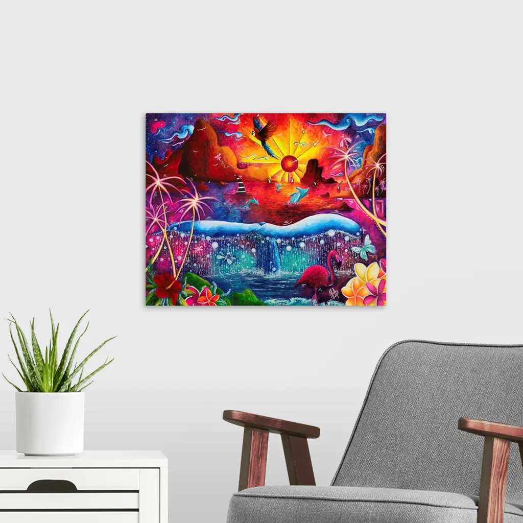 Paradise Found - Whale Tail Tropical Sunset wall art for home and office decor. Discover canvas art prints, photos, mural, big canvas art and framed wall art in GreatBigCanvas.com's varied collections.