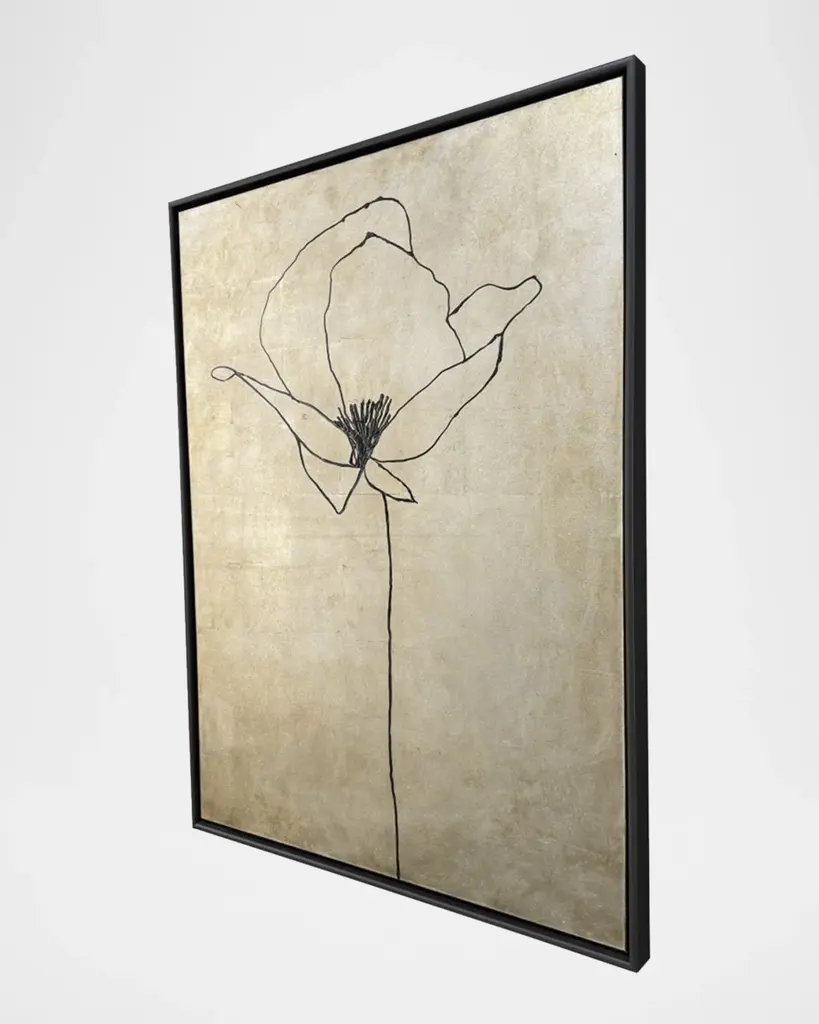 Handcrafted of silver leaf and acrylic paint on canvas, "Silver Poppies II" by artist Susan Adamson-Ray comes mounted in a wood floater frame, ready to be hung on your wall. Overall, approx. 38"W x 2"D x 50"T Wire hanging hardware is included Hangs vertically Wipe clean Weight, 12.0 lbs Made in USA Boxed weight, approximately 23.0 lbs Proposition 65 warning for California residents Shipping Direct from Vendor, usually ships within 30 business days. undefined