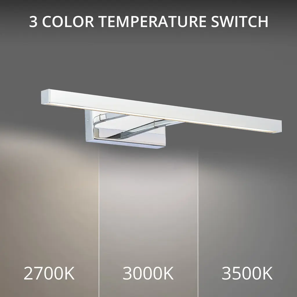 This even line of light is a functional piece of minimalist art that is packed with versatility. Use Parallax as a bath vanity light or as an accent on your wall available in a 17in or 23in size. A clean design with solid construction, Parallax is available in black, chrome, and brushed nickel finishes. Energy efficient integrated LED's provide a long-lasting maintenance-free bright and even illumination. NEW: Tri-CCT technology features a switch inside the canopy that is accessible during installation and allows you to toggle color temperatures between 2700K Warm - 3000K Warm White - 3500 White to find and set the perfect color temperature for your space. This fixture is factory pre-set to a default setting of your choosing (30 in part number for 3000K, 27 in part number for 2700K, etc.) for consistency and can be easily modified in the field during installation by the flip of a switch.