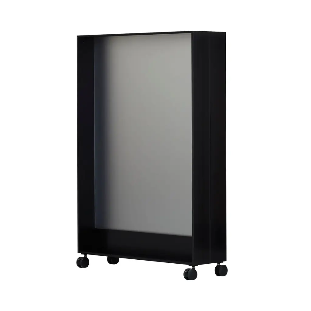 Interior panels in elm or walnut as well as a durable polycarbonate distinguish this edition of Tomoya Tabuchi’s space-dividing Parallel Partition with a graphic picture-frame look. The Japanese designer also narrows his focus to the subdivided spaces, bringing the warmth of wood to the newly created interiors. Available in 2 sizes, the divider boasts the ease of rolling castors for quick switch-ups and the structure is fashioned in black-treated aluminum.
