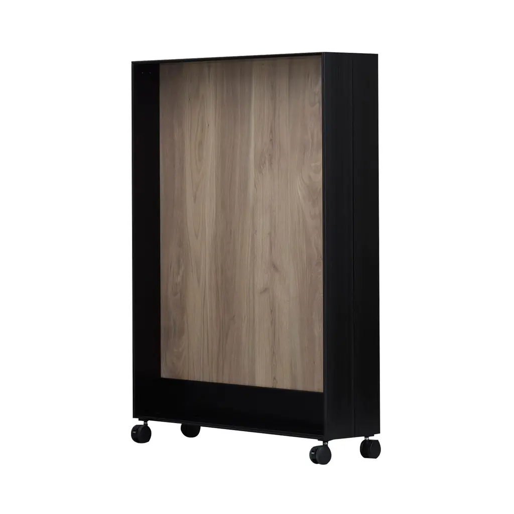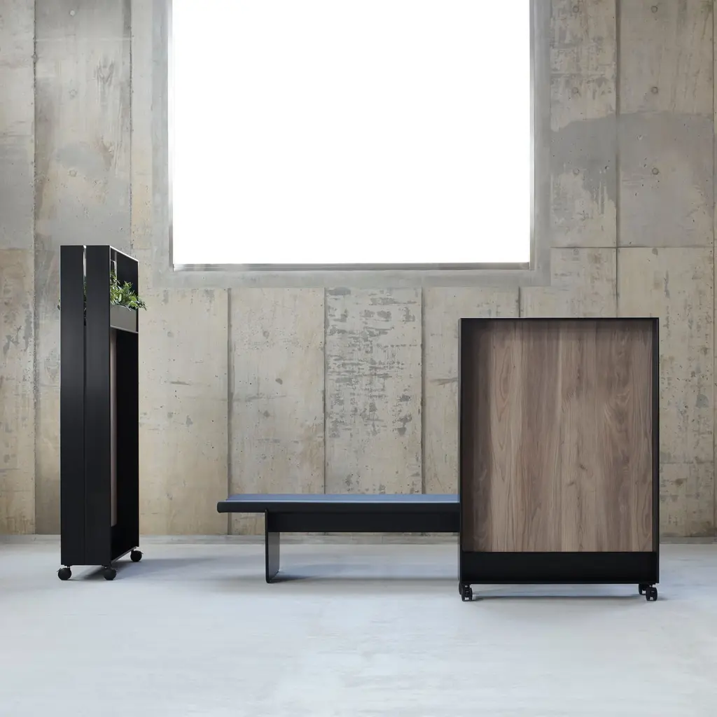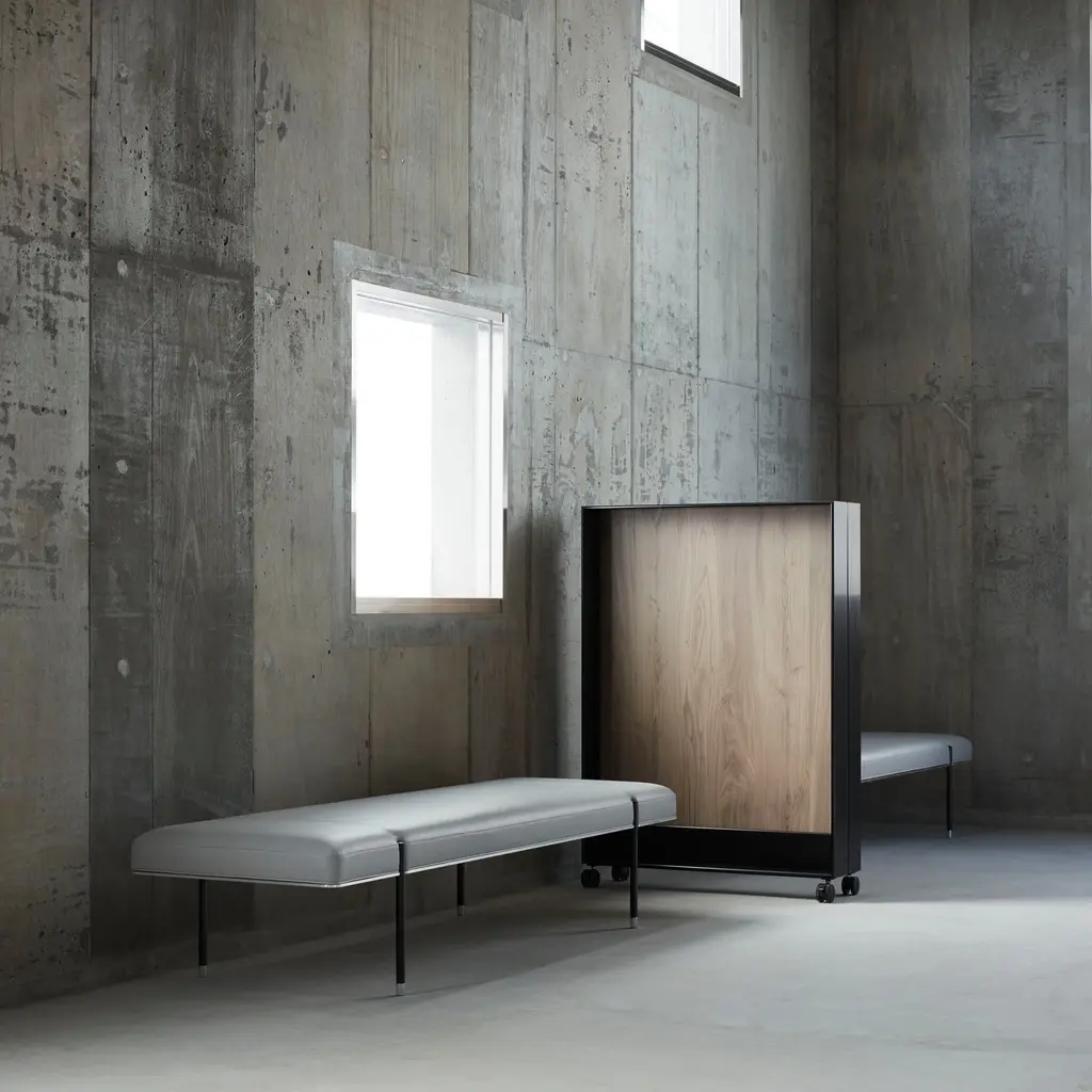 Interior panels in elm or walnut as well as a durable polycarbonate distinguish this edition of Tomoya Tabuchi’s space-dividing Parallel Partition with a graphic picture-frame look. The Japanese designer also narrows his focus to the subdivided spaces, bringing the warmth of wood to the newly created interiors. Available in 2 sizes, the divider boasts the ease of rolling castors for quick switch-ups and the structure is fashioned in black-treated aluminum.