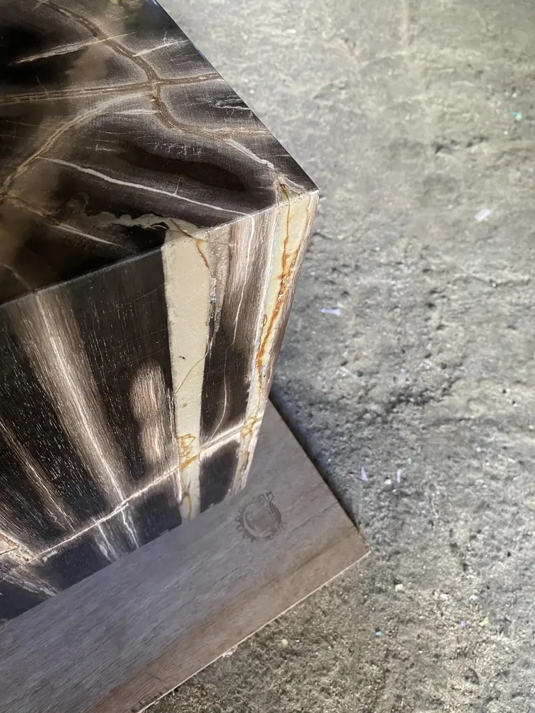 Parallelepiped wood by DeepWoodOne of a KindDimensions: L 30 W 30 H 40 cmMaterials: Petrified wood fully polished, steel legsWight: 70 kgEach DeepWood piece is expertly crafted from a rarefied specimen of petrified wood and contains 25 million+ years of history etched into the very fiber of its enigmatic character. Elegantly accented with the finest materials, to ensure a piece that will stand the test of time eternal.Nobility of NatureBy its very nature, every piece of petrified wood is one of a kind. A slice of the planet come to life. Timeless elegance meets contemporary design. Own a piece of history. The True Beauty of Ages PastArt of true value is an experience to be lived, a deep truth to be felt. The world’s greatest artistic masterpieces tell stories that inspire questions of the highest order, leading the imagination down a thousand corridors… and in some cases millions of years.Modern RenaissanceDW is a brand advocate of sensual intelligence. We believe that we need to bring meaningfulness back to our daily life. Learn how to be empathetic to the objects we touch, scenarios we observe, and energies we circulate through our bodies. Delicate beauty harbors a subtle power. Aesthetic values are irreplaceable, and visual communication is like a universal language.It creates the interplay of perceptions and sensations and focuses on the present moment of life that sparks unrepeatable. Each DW piece incites its prickle of curiosity that drives the wish to understand & sense more and, therefore, increase intelligence.