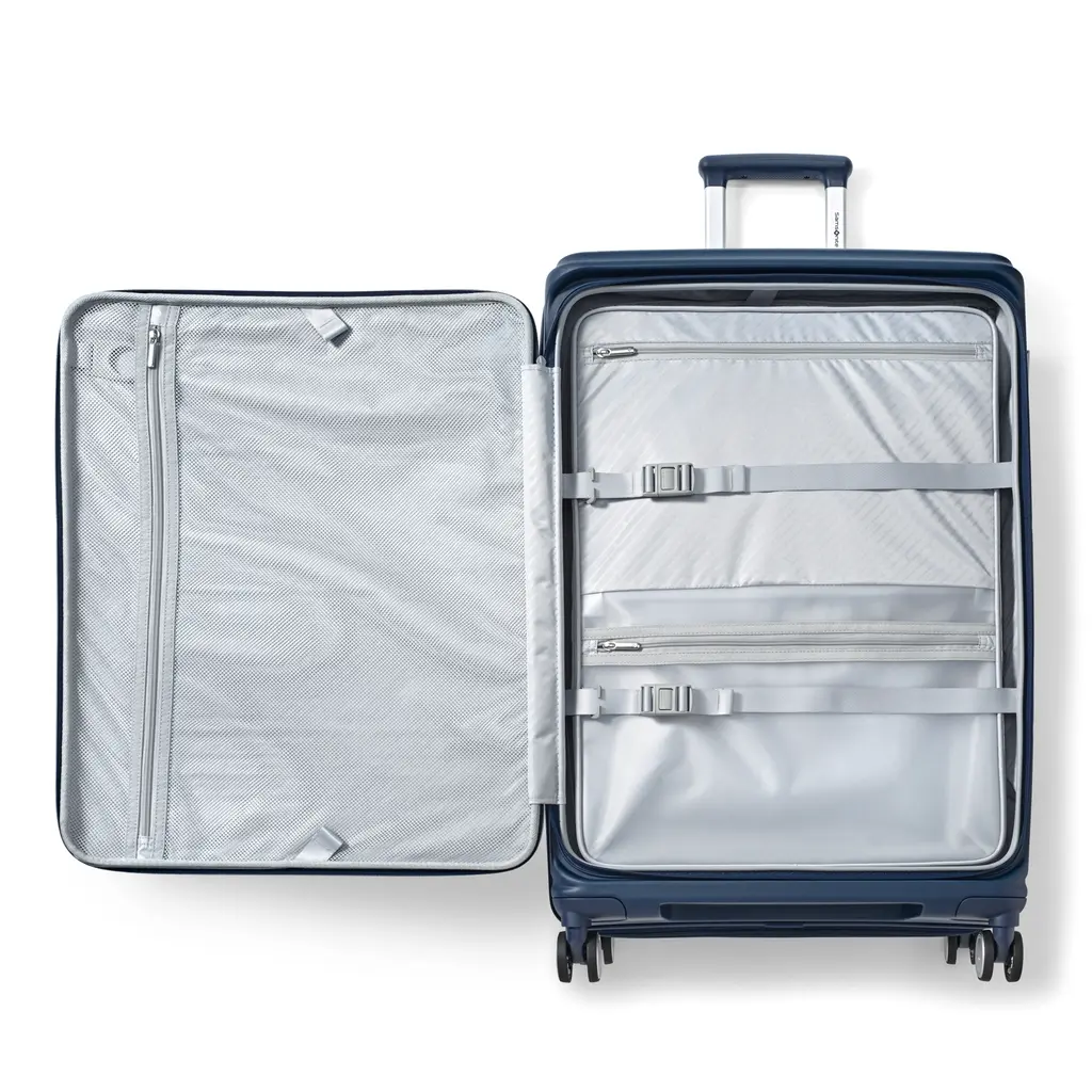 Introducing the Paralux Hardside Large Spinner, Samsonite's first-ever luggage innovation featuring two convenient ways to access your belongings. It opens from the middle, like traditional luggage, and provides a second front door opening that allows you to fully pack and unpack when floor space is limited. Made from ultra-durable materials, the suitcase's dual access design includes a TSA-approved lock to secure the front and center openings. It also comes with three different sizes of removable packing cubes, allowing you to customize how you organize your travel essentials.
