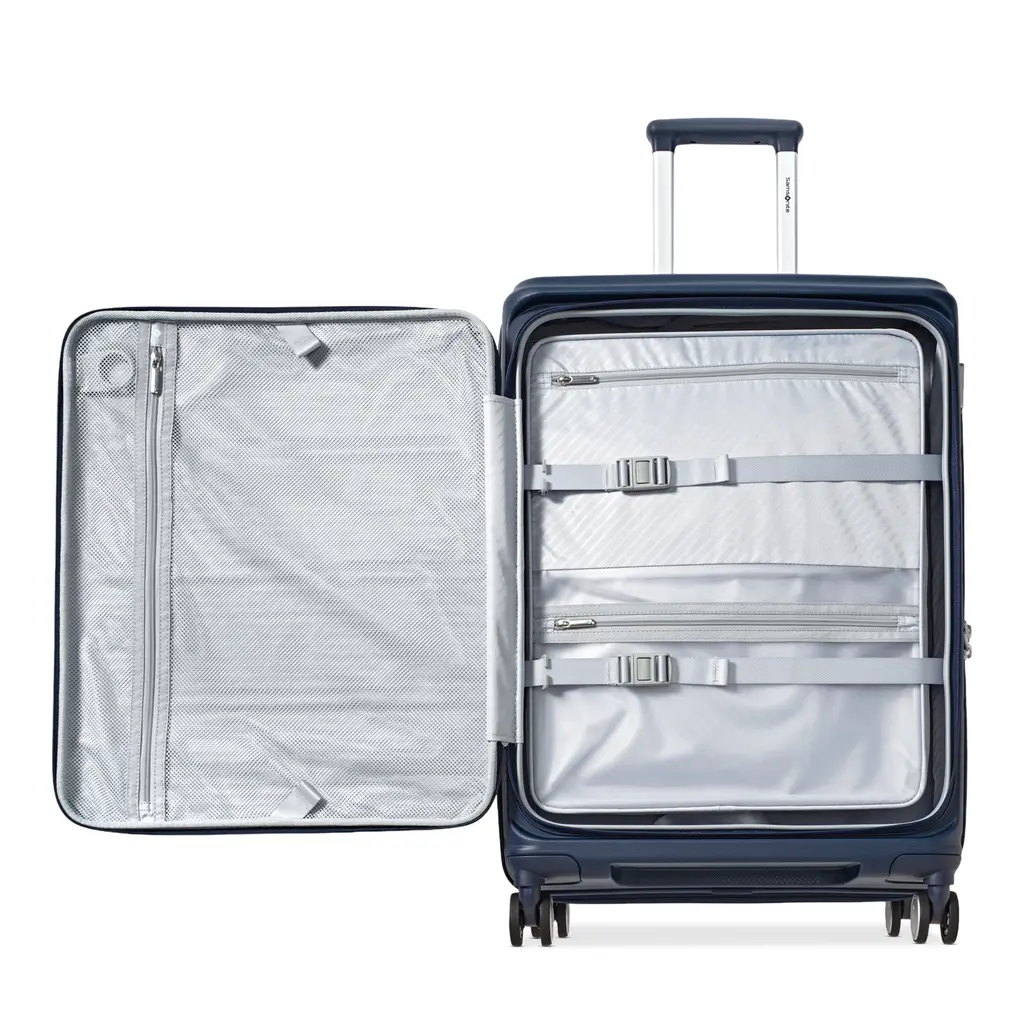 Introducing the Paralux Hardside Medium Spinner, Samsonite's first-ever luggage innovation featuring two convenient ways to access your belongings. It opens from the middle, like traditional luggage, and provides a second front door opening that allows you to fully pack and unpack when floor space is limited.