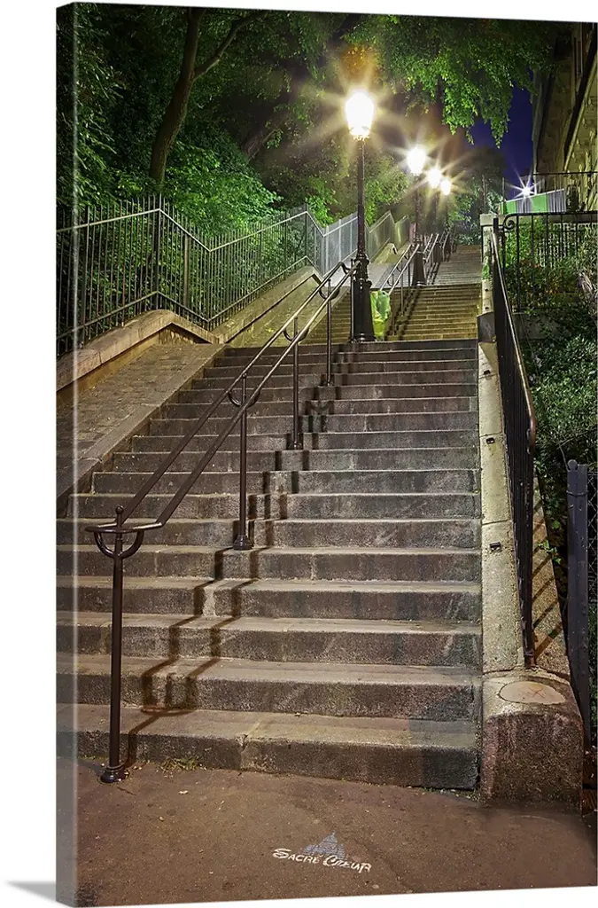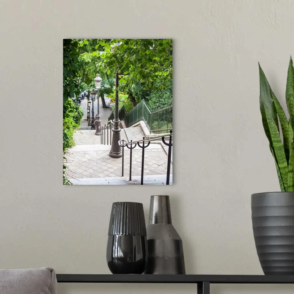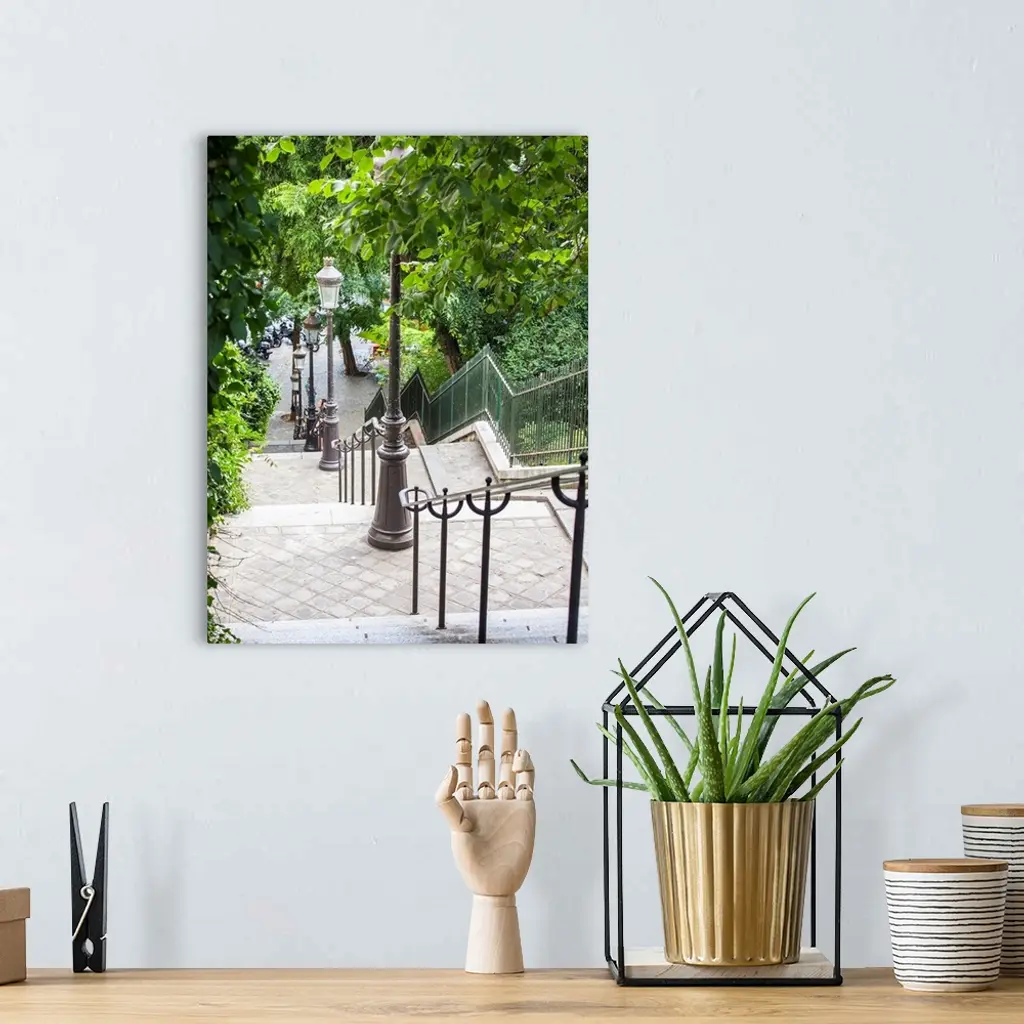 Paris, France, on august 31, 2015. The street with a ladder on a slope of Montmartre.