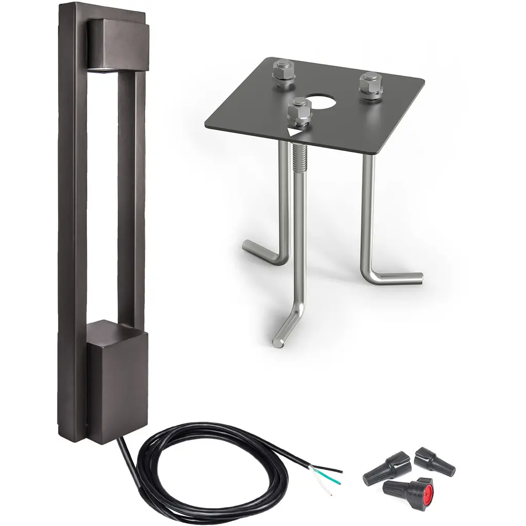 The Park LED Bollard Landscape Light offers illumination to cast out darkness and create a safer landscape space. Made from die-cast aluminum for lasting durability, the Park LED Bollard features a sleek build with long rectangular openings. A concealed acrylic white diffuser projects an internal downlight that radiates down and out through the rectangular space for a stunning light display. This bollard light is powered by bright long lasting integrated LED's and can conveniently tap into existing landscape lighting systems. Factory sealed and water tight with an IP66 rating for protection against high-pressure water jets and outdoor elements. Casted using a special k-alloy aluminum that is engineered to withstand the most challenging environments over time. Includes a guardian spike mounting accessory (optional concrete pour kit is sold separately SKU M66-CON-KIT) and a 3ft lead wire with two gel filled direct burial wire nuts. A magnetic or electronic power supply is required (sold separately) for 12V fixtures.