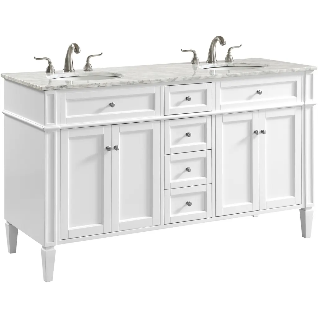 Park Avenue 60 X 35 Inch White With Carrara White Marble Vanity Set