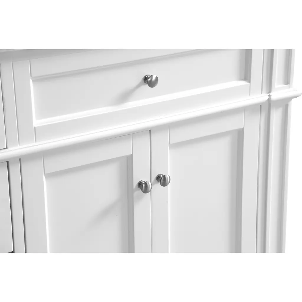 This classic, contemporary marble top vanity console from our “Park Avenue” collection is roomy enough to keep all your bath essentials close at hand. Fitted with a spacious Italian Carrara white marble counter top and 2 oval porcelain sink, you will naturally enhance your home or office bathroom with both its beauty and practicality. Featuring a hand painted white cabinet, 4 drawers in the middle, a set of recessed door with shelf inside on each side, brushed steel knob and tapered leg. measurements: W60in. x D21.5in. x H35in.