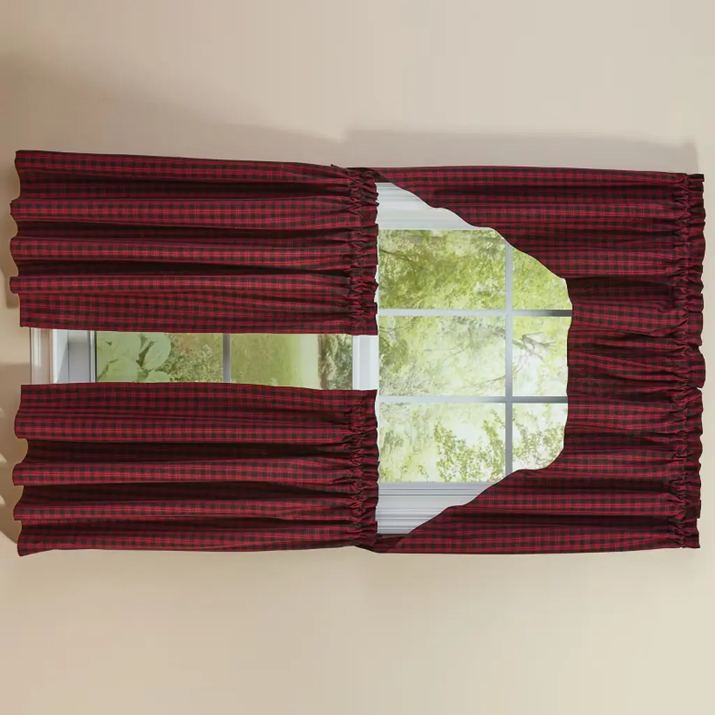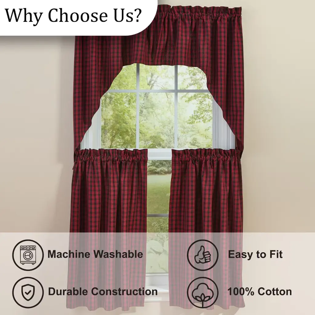 This classic won't go out of style! The printed plaid design in black and red hues on this patterned tier curtain pair is perfect for year-round use. The rustic colorway and versatile pattern makes these great for adding a fresh and casual feel without overwhelming your home space. The natural ruffling of the fabric provides a timeless look without having to redecorate an entire room that can be used by itself or paired with your favorite valance curtain for a dynamic display. This window treatment pairing can be used time and time again in your favorite farmhouse, holiday, country, lodge, cabin, or primitive dining room decor.