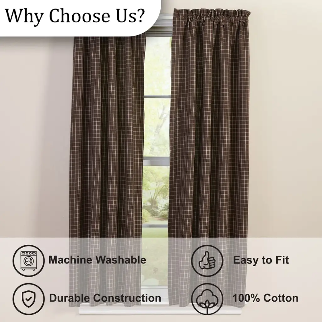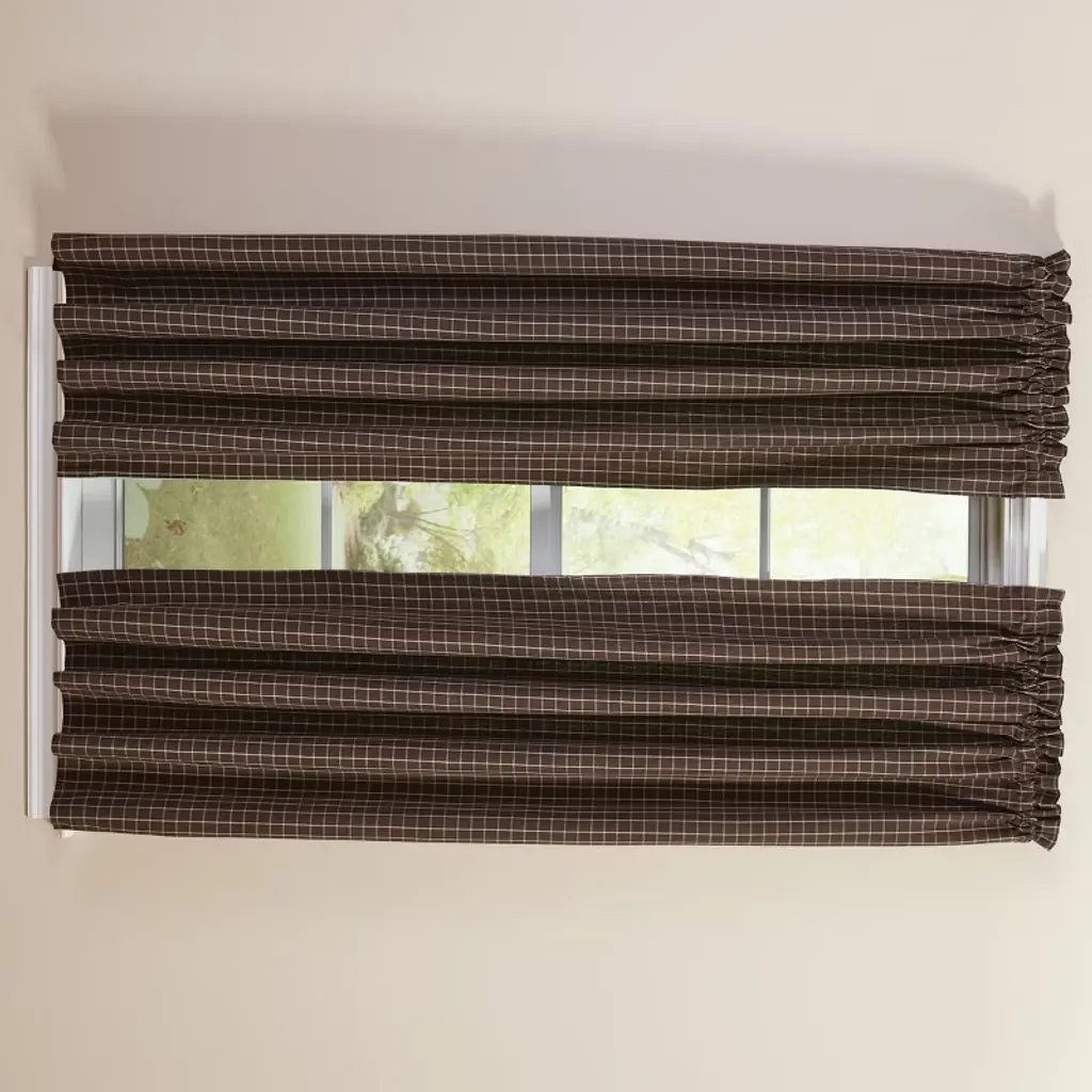 Classic with cozy country charm, this patterned curtain panel pairing introduces a versatile element to any window space. The printed windowpane plaid design in brown and cream hues is perfect for year-round use. The rustic colorway and versatile pattern make these great for adding a fresh and casual feel without overwhelming your home space. The natural ruffling of the fabric provides a timeless look without having to redecorate an entire room. This window treatment pairing can be used time and time again in your favorite modern farmhouse, country, bohemian, fall, lodge, cabin, or primitive dining room decor. Unlined to help softly filter harsh lighting that also includes a coordinating set of curtain tiebacks to effectively pull back the panels to let a flood of natural sunlight fill your room space.