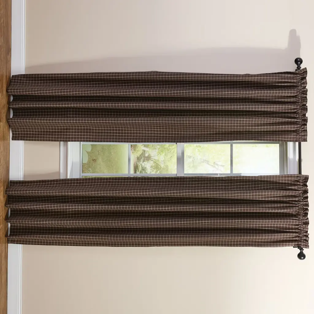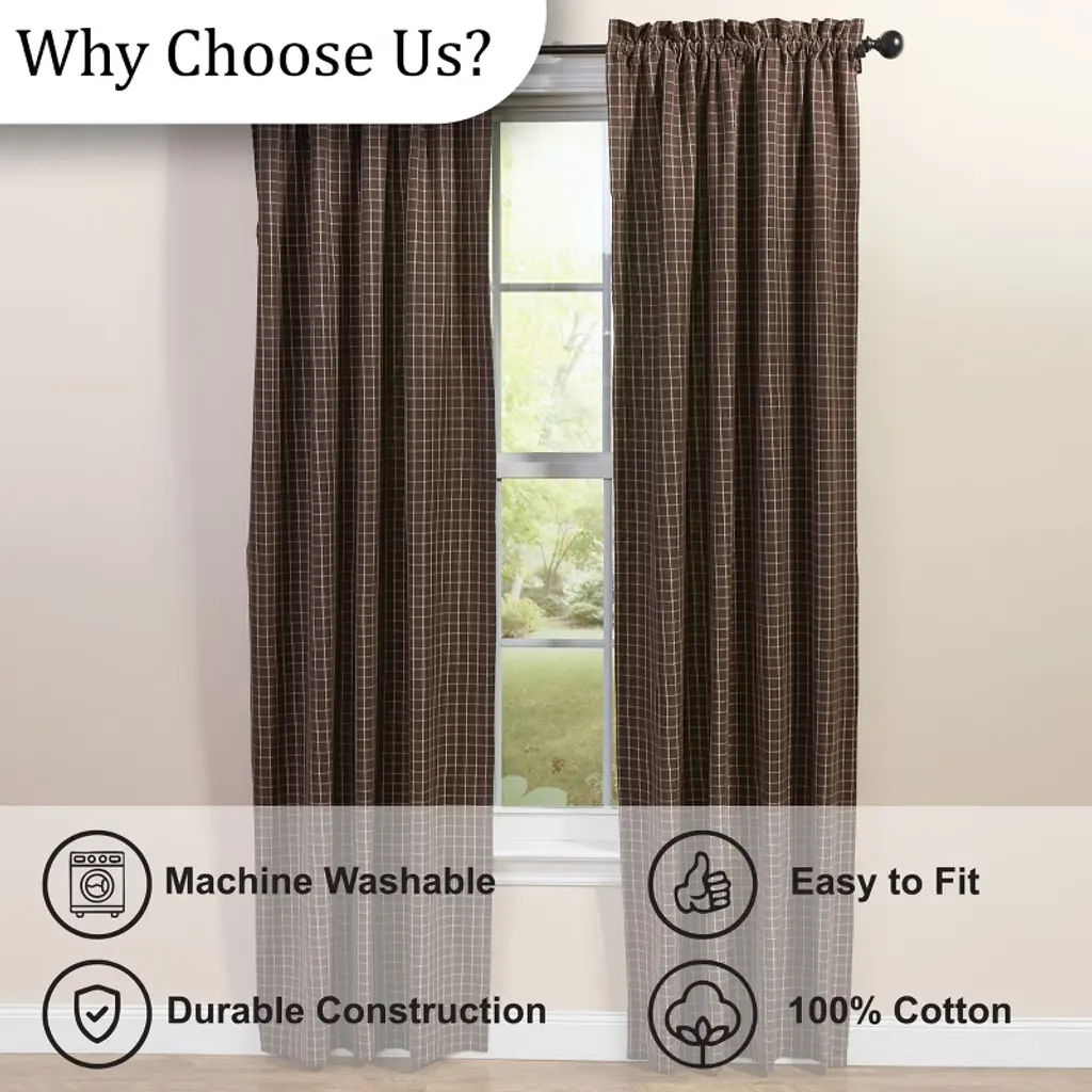 Classic with cozy country charm, this patterned curtain panel pair introduces a versatile element to any window space. The printed windowpane plaid design in brown and cream hues is perfect for year-round use. The rustic colorway and versatile pattern make these window treatments great for adding a fresh and casual feel without overwhelming your home space. The natural ruffling of the fabric provides a timeless look without having to redecorate an entire room. Includes coordinating curtain tiebacks, this drapery is intricately constructed with lined cotton material to help filter harsh outdoor lighting that makes it the perfect addition to use in a dining room, bedroom, kitchen, living room setting, and more.