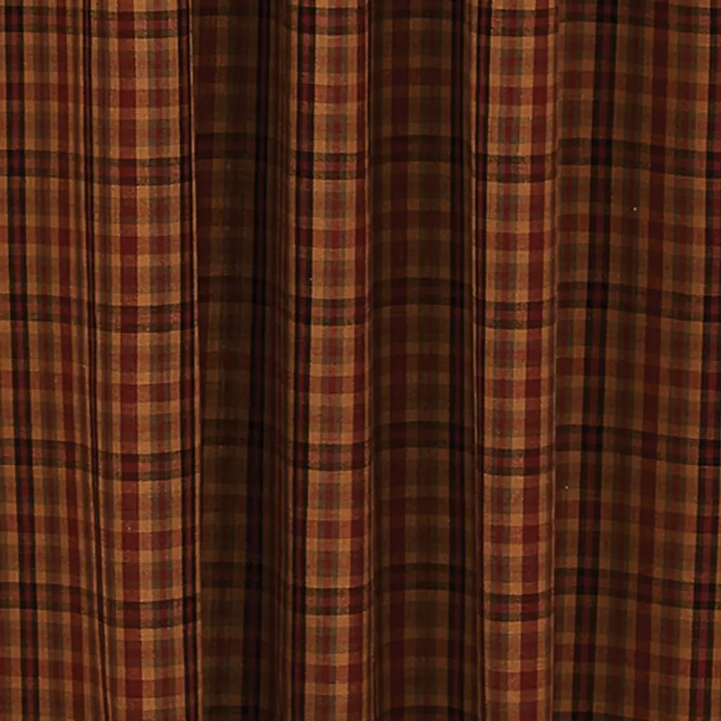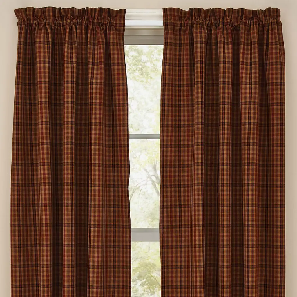 Rustic red, yellow, brown, tan, and a hint of black hues combine in a primitive plaid pattern to amplify any room space with a country style. The versatile plaid pattern on this window panel introduces the perfect farmhouse atmosphere to your everyday home decor. Lined element to provide privacy and a filtered look to outdoor lighting in an office, bedroom, living room, kitchen, and throughout the house for a country look.