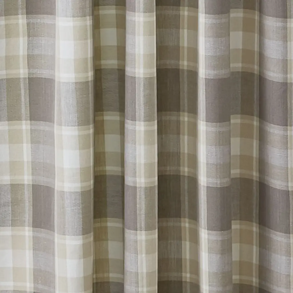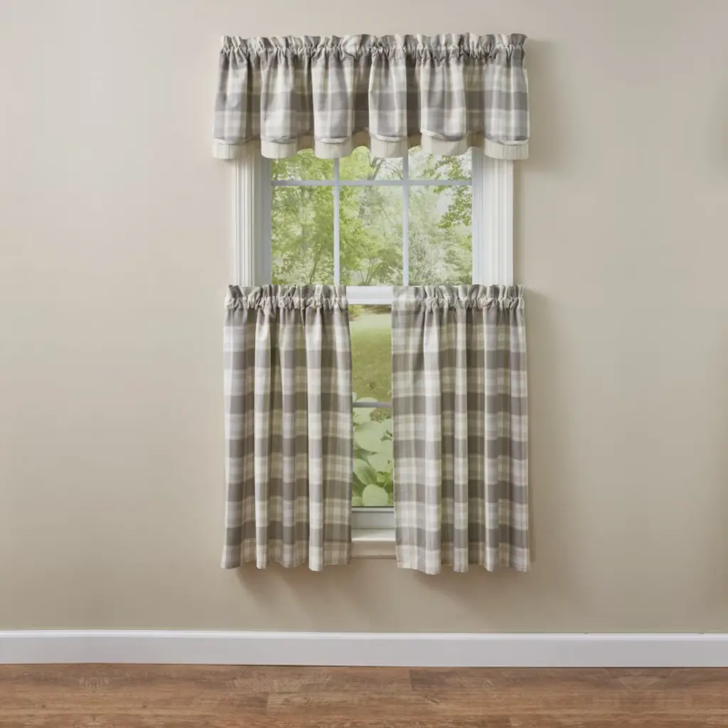 Instantly transform a home setting with comfortable neutrals fit for year-round use and a variety of interior styles. This patterned tier curtain pair introduces a cozy charm with its plaid fabric and natural tan hues. The unlined cotton material offers a timeless addition, allowing natural sunlight to flow into any kitchen or room window setting without being overwhelming. For longest lasting results, machine wash then line dry.