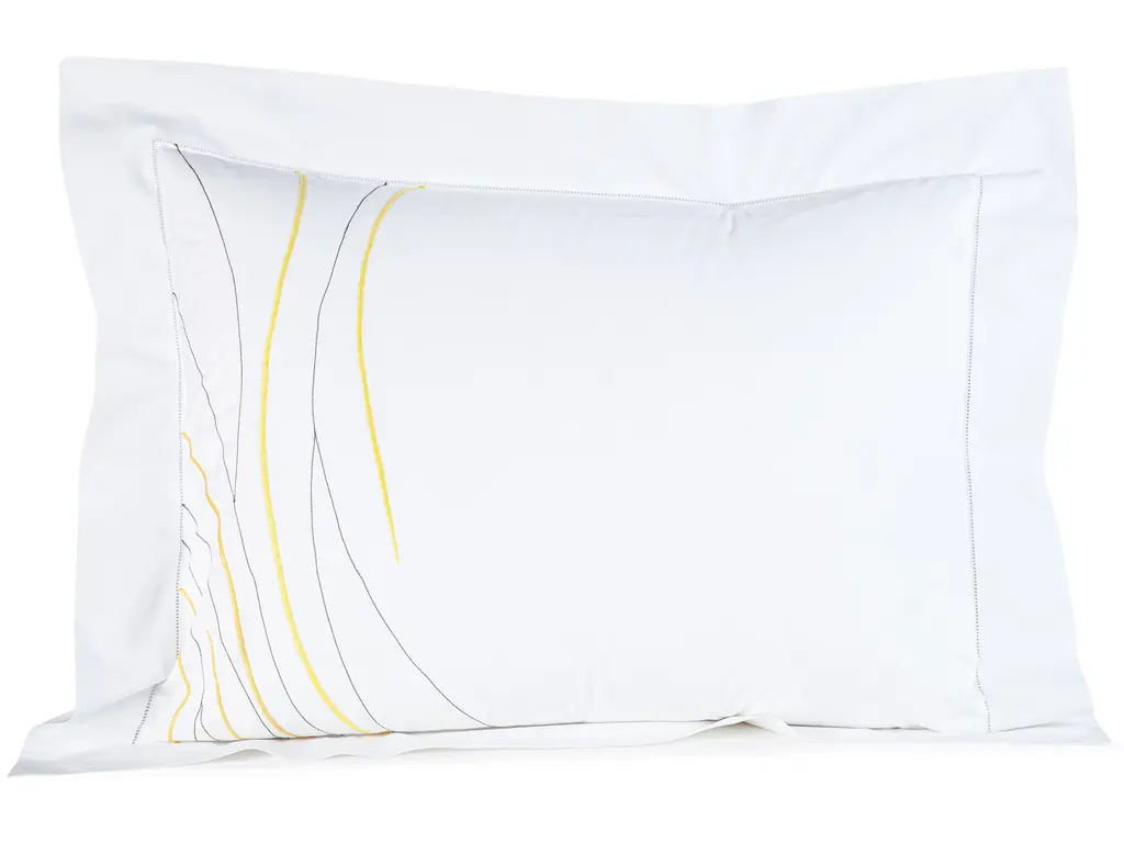 This refreshingly hip design does more than refine your bedroom, it redefines it. Slender lines in Black and Yellow bend and curl to create a bold contemporary tone that’s attractive and tasteful. In addition to the fully present state of this style, the phenomenal embroidery and hemstitching are done by hand on Italian 600 thread count 100% Egyptian cotton sateen for a heritage-like quality you can see and feel. Imported.
