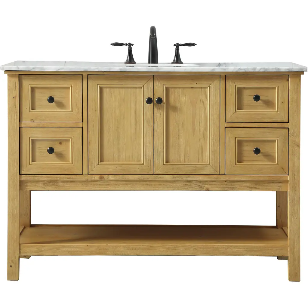 Willow Collection Parker Teak 60 x 22 Double Sink Bath Vanity in Light Natural with 2" Straight/ Mitered Edge Carrara MarbleThe Parker Teak vanity is a beautiful and modern addition to any bathroom. The sleek, spare design is perfect for a fresh and modern decor, and the top-quality materials and construction are sure to impress. The soft closing doors are a nice touch, and the generous storage space is perfect for all of your bathroom essentials. Whether you're looking for a new centerpiece for your master bathroom or a guest powder room, The Parker Teak vanity is sure to impress. Thanks to its high-quality construction, beautiful design, and ample storage space, this vanity is sure to become a treasured part of your home for years to come.Details:Material: Teak WoodFinish Available: Premium Natural, Golden Teak And Light NaturalNumber of Drawers: 6 Regular Drawers, 1 Bottom ShelfSink Installation: Under-mounted rectangle SINK(S)Hardware: Soft closing hinges and sliderHardware Finish : GoldCabinet Width: 59 (in.)Cabinet Depth: 21-1/2 (in.)Countertop Width: 60 (in.)Countertop Depth: 22 (in.)Cabinet Height: 34 (in.)Countertop Height: 1.5 (in.) Double Cove Edge or 2 (in.) Straight/ Mitered EdgeCabinet Height with Top: 36 (in.)Backsplash Height: 4 (in.)Faucet: NOT IncludedFaucet Hole(S): Comes with SINGLE hole faucetVanity Countertops options: Mitered /Straight edge or Double Cove Edge (Pure White Quartz, Calacatta Laza Quartz, Calacatta Nuvo Quartz, Empira White Quartz, Carrara Marble, Carrara Quartz, Piatra Gray Quartz, Calacatta Black, Calacatta Gold, Venatino Quartz, Pearl Light Gray, Viola Brown, Viola Gold, Viola Night, Calacatta Sienna, 2" Calacatta Poanazzo, 3 CM Artic White)