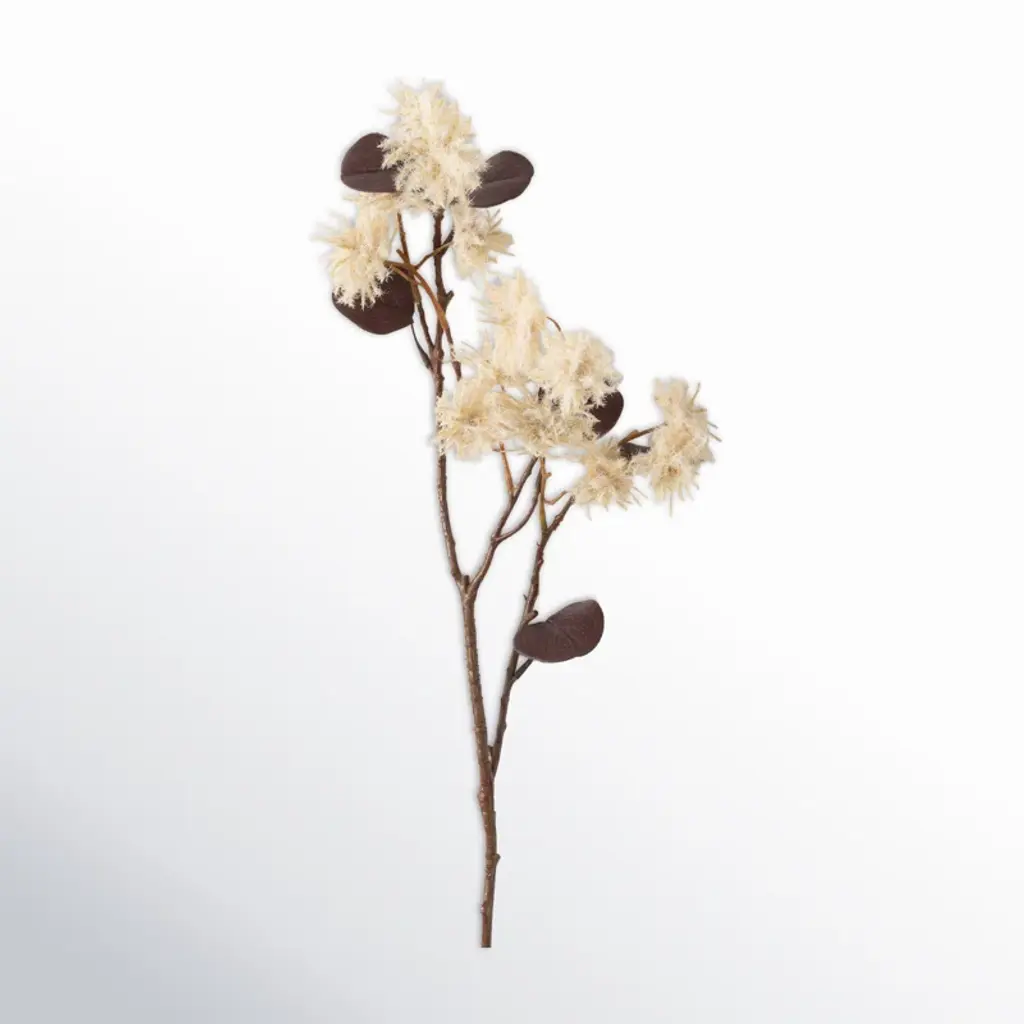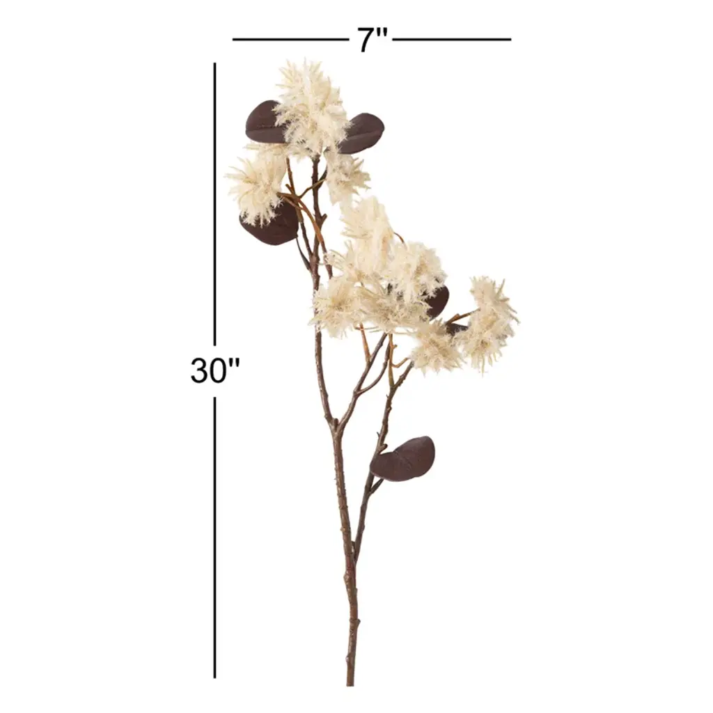 This unique stem features creamy flocked chestnut spray with brown eucalyptus leaves. Perfect to add to a centerpiece or to display on its own, this chestnut spray is versatile enough to complement a variety of decor styles and neutral enough to leave on display all year long.