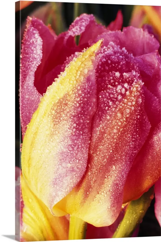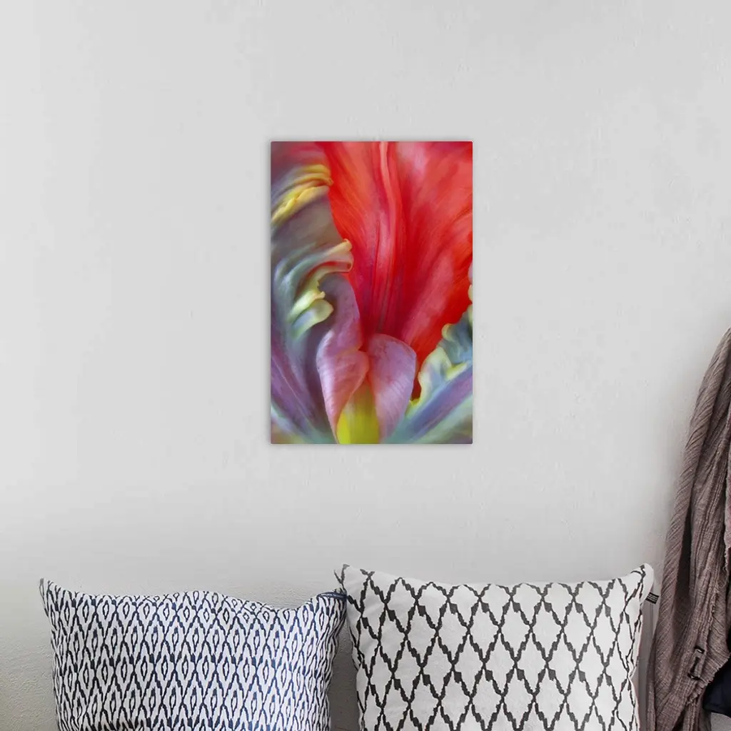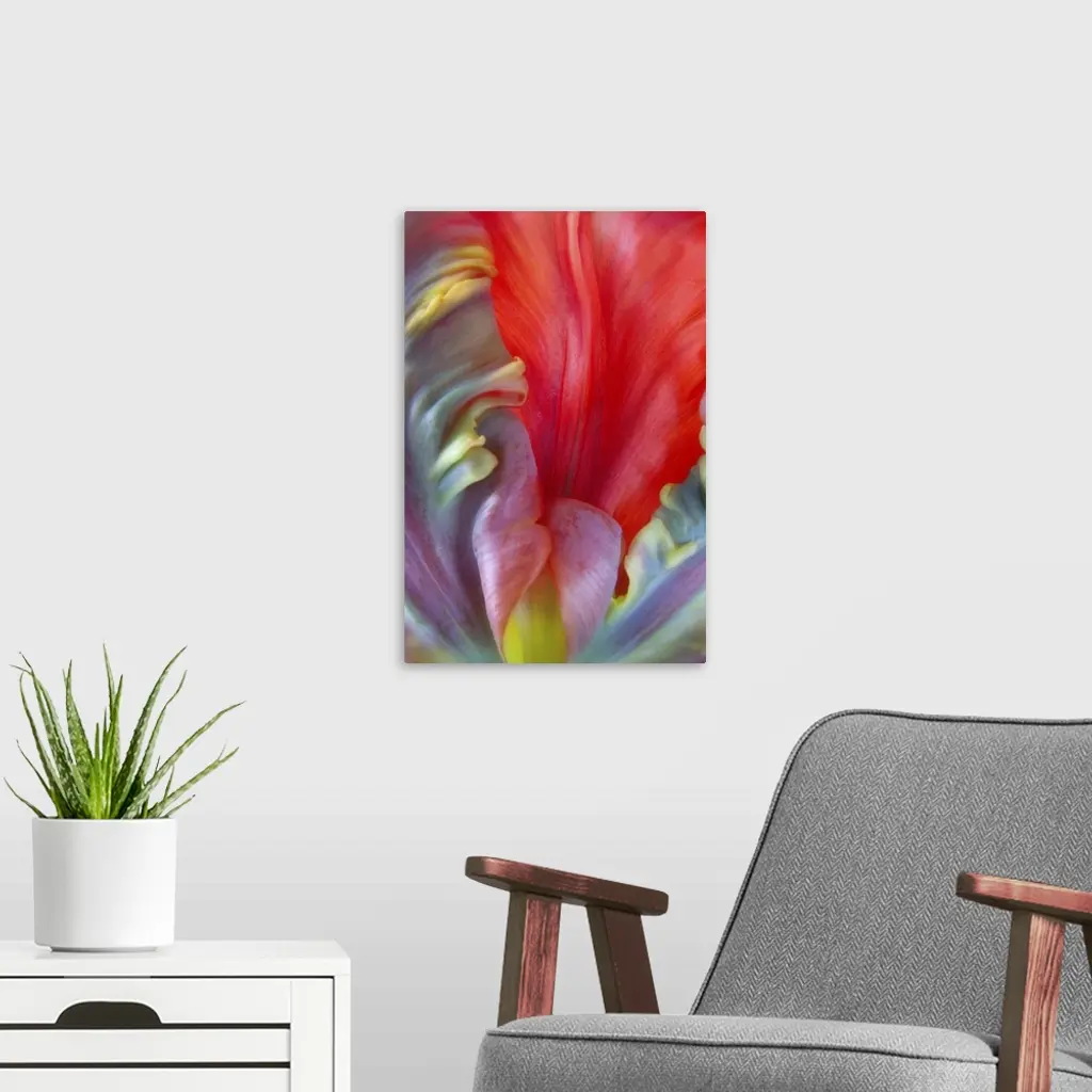 Close up of the colorful petals of a Parrot Tulip flower.