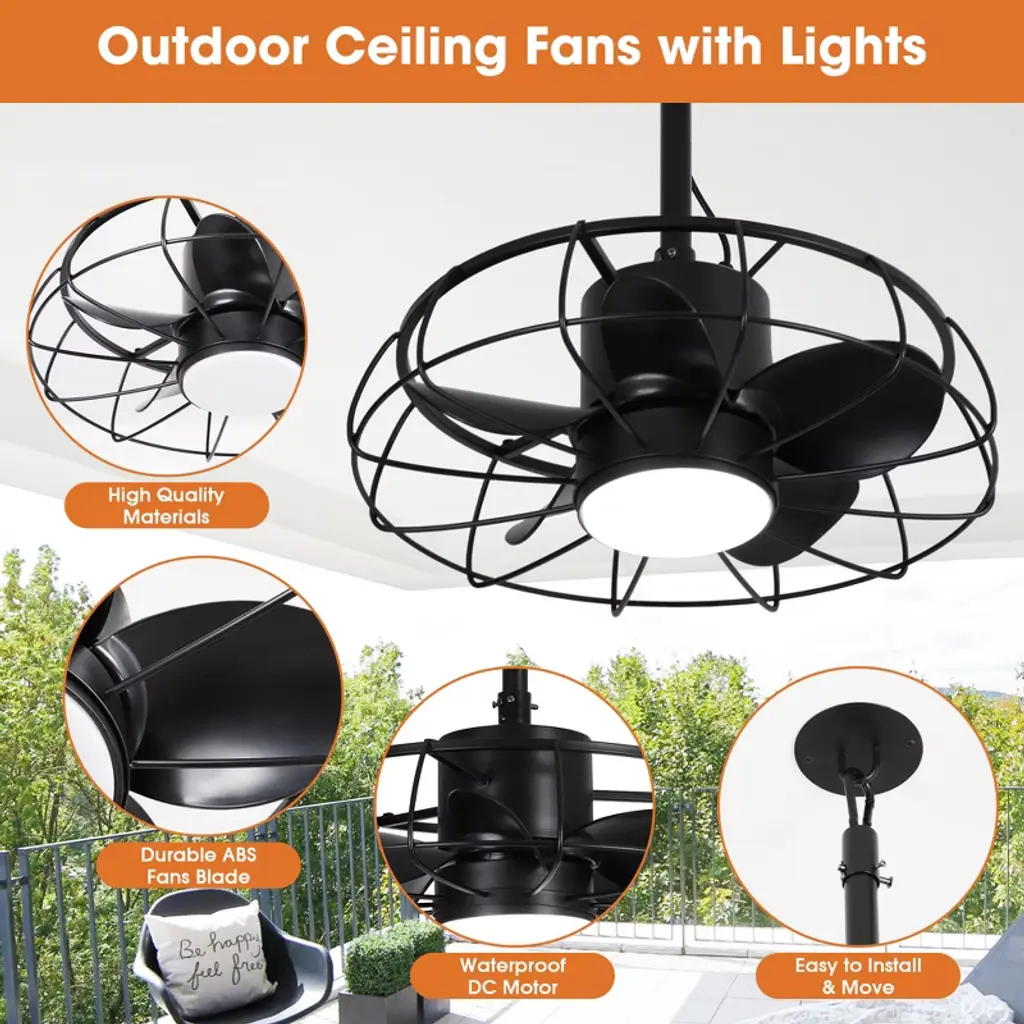 Parrot Uncle 20 Inch Black Modern Cage Ceiling Fan With Light Remote Metal Outdoor Ceiling Fans For Hallway Gazebo