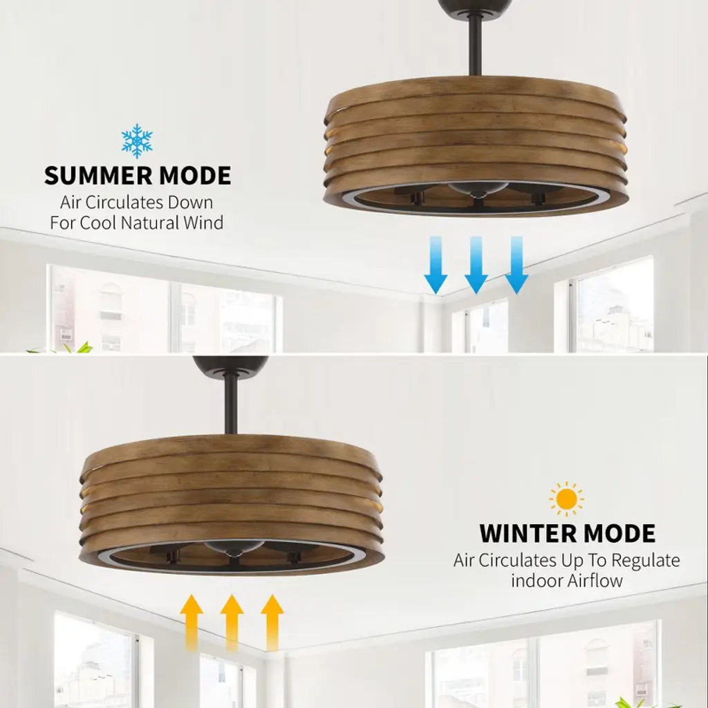 This contemporary fandelier reimagines airflow with a space-saving bladeless design, paired with a sleek cage-inspired lampshade that adds industrial chic to any room. The ultimate dual-purpose fixture combines powerful cooling and ambient lighting in one unit, all conveniently controlled by a handheld remote. Enjoy modern comfort and smart functionality that elevates your living space effortlessly